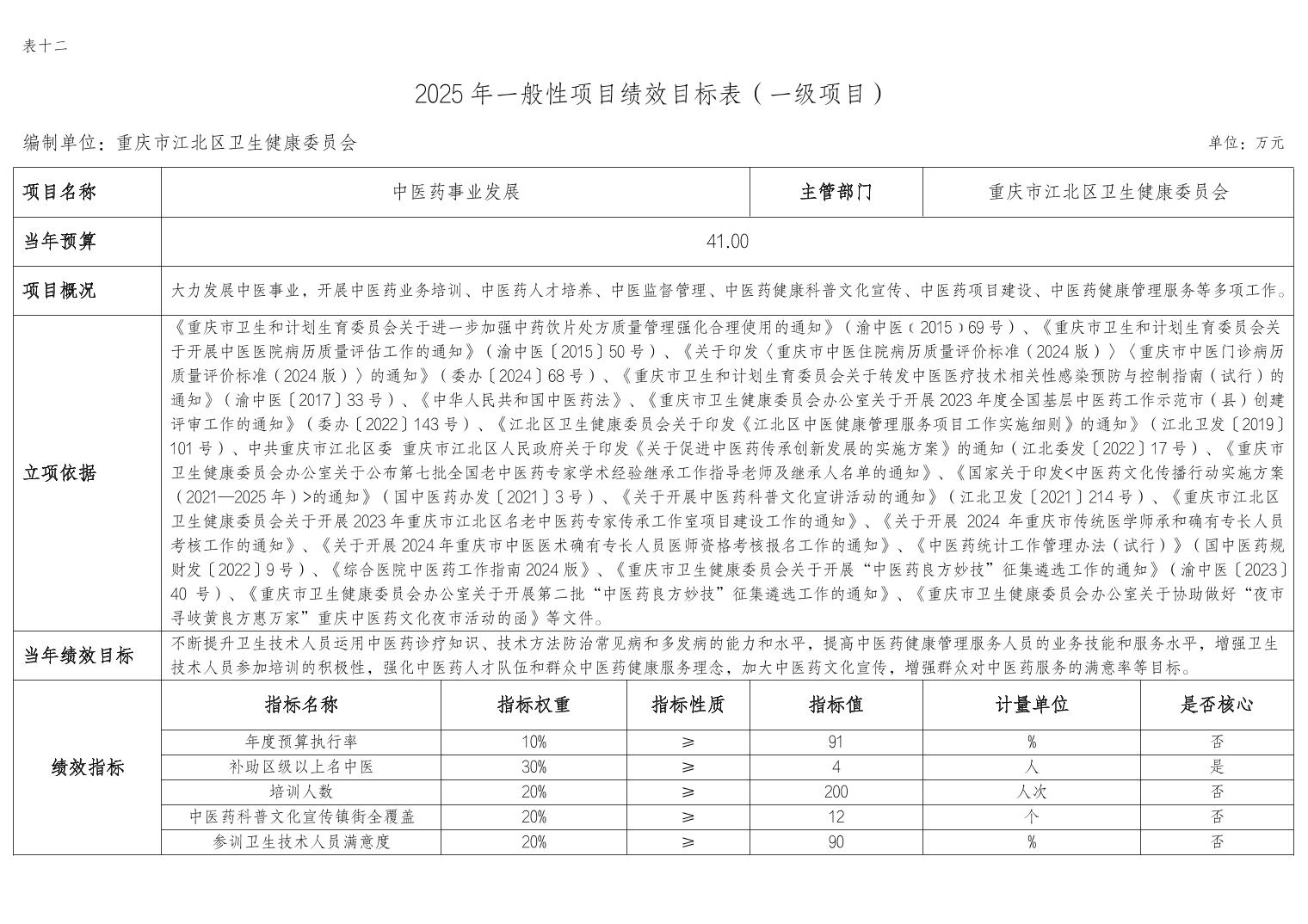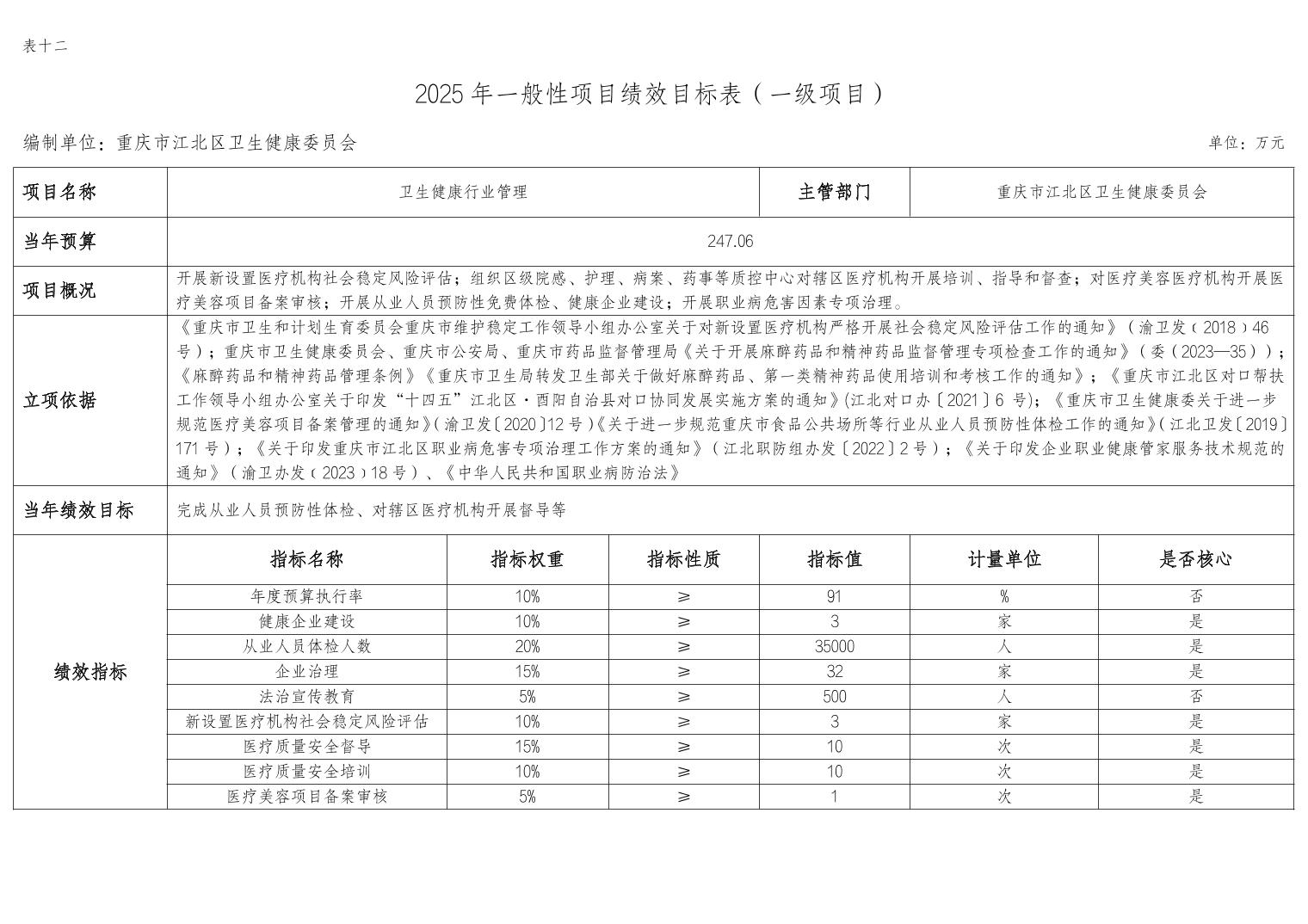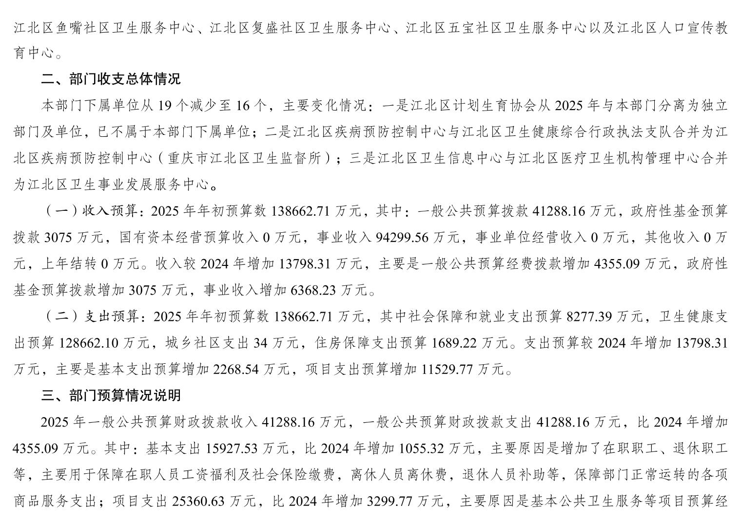 重慶市江北區衛生健康委員會2025年部門預算情況說明