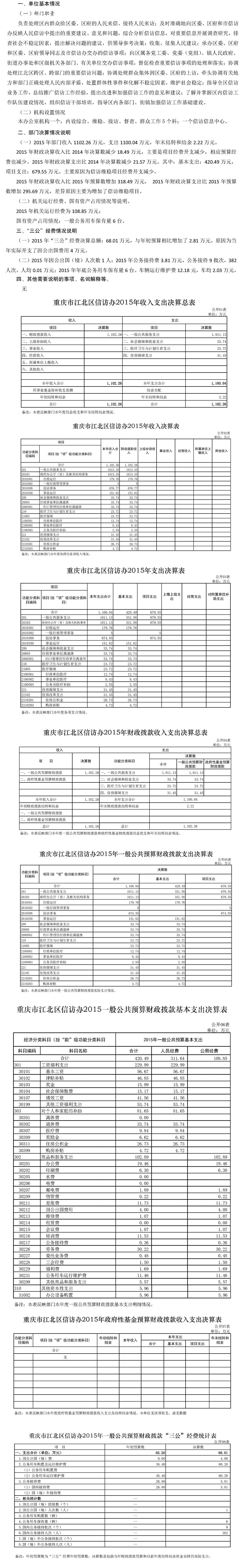 江北區信訪辦公室2015年部門決算情況說明