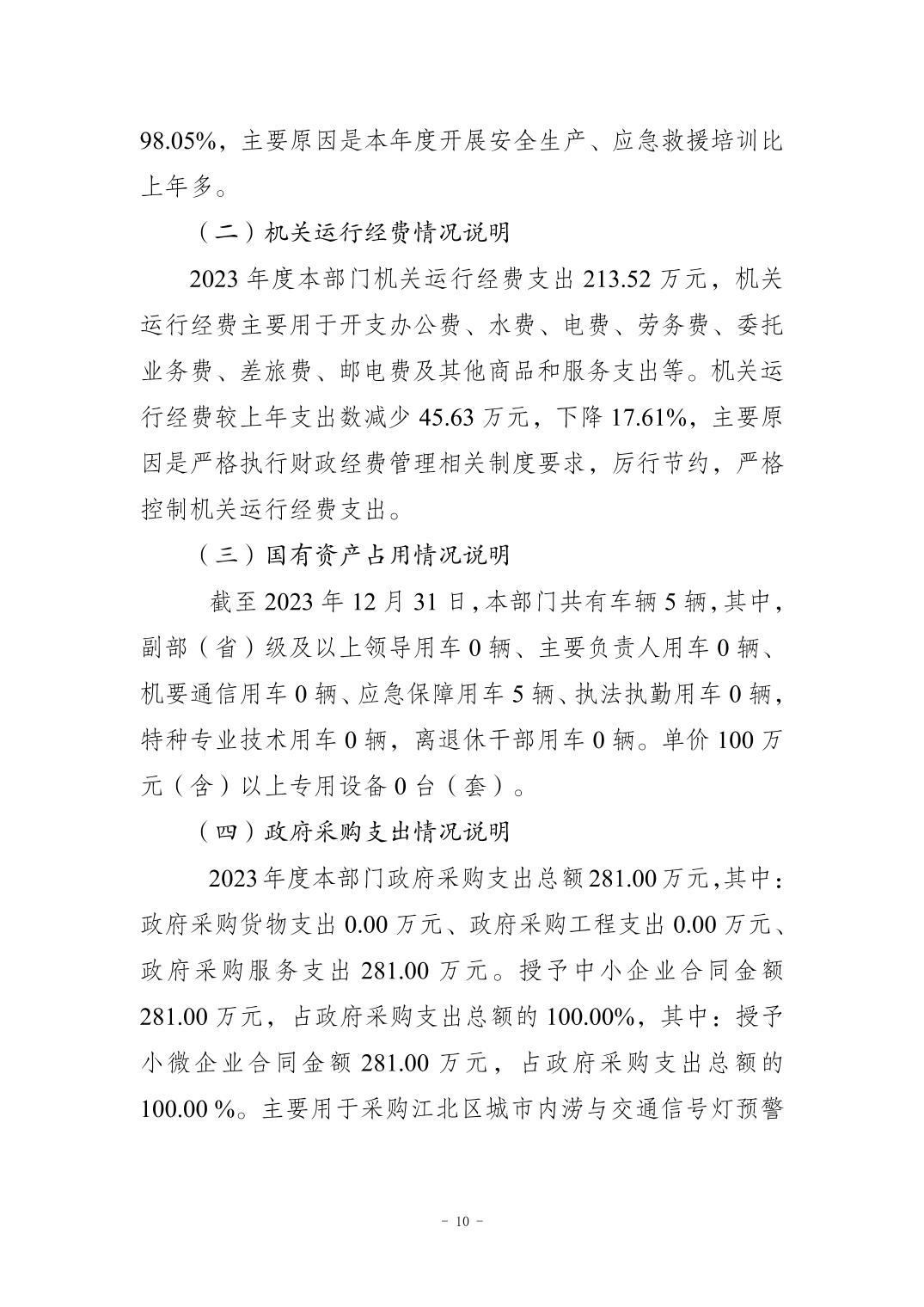 重慶市江北區(qū)應(yīng)急管理局2023年度決算公開說明