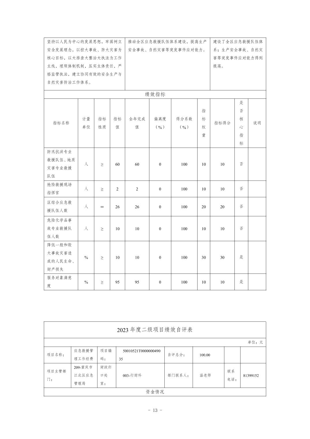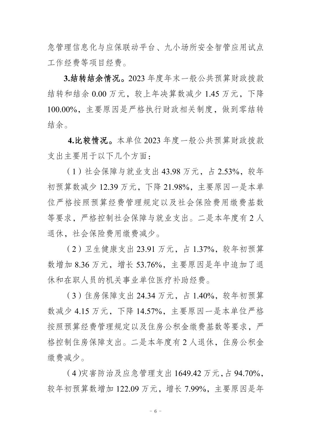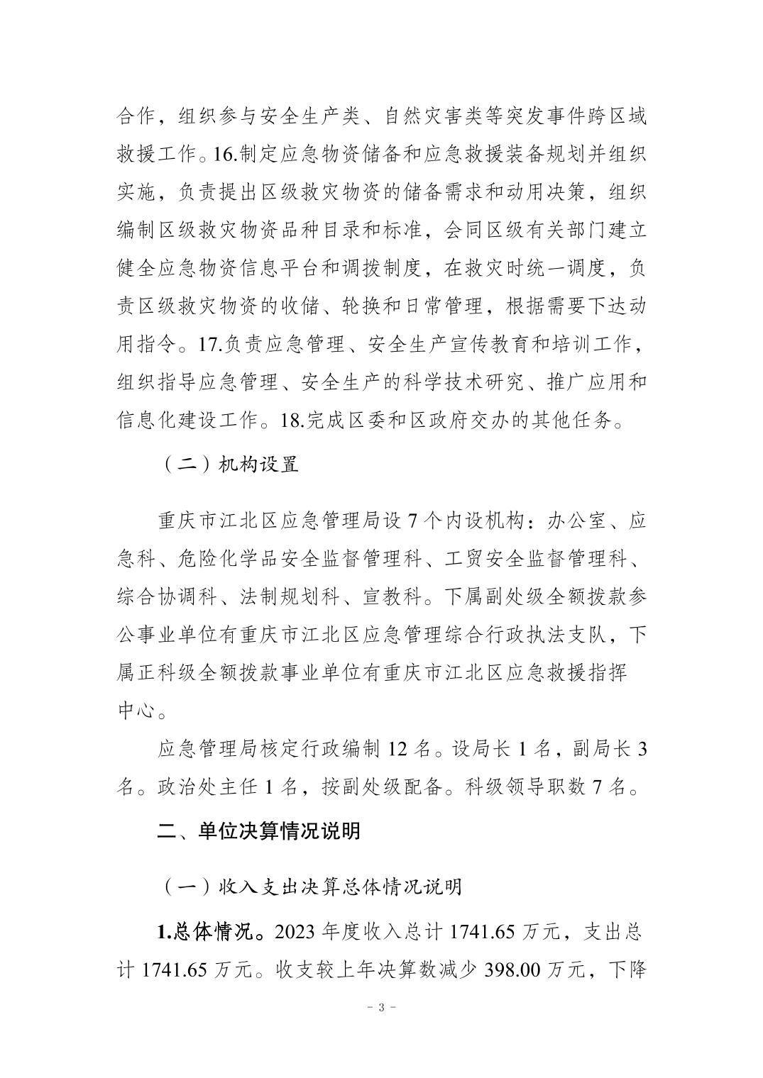 重慶市江北區(qū)應(yīng)急管理局(本級(jí))2023年度決算公開說明