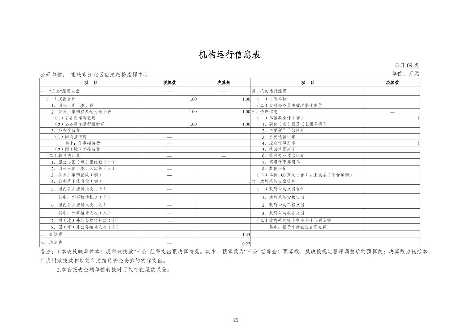 重慶市江北區應急救援指揮中心2023年度決算公開說明