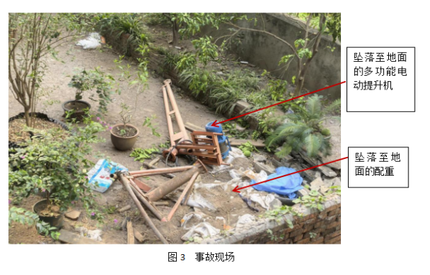 經現場勘查和詢問現場工作人員,事故地點位于江北區觀音橋塔坪39號樓,事故提升機安裝于屋面冒廳頂部,兩名作業人員位于6樓樓頂走廊,走廊端頭一側因作業需要被拆除。事發時天氣晴朗,氣溫40攝氏度以上。該提升機為非特種起重設備,屬小型機械設備,不需要專業安裝人員進行安裝,操作人員不需要持有操作資格證書。