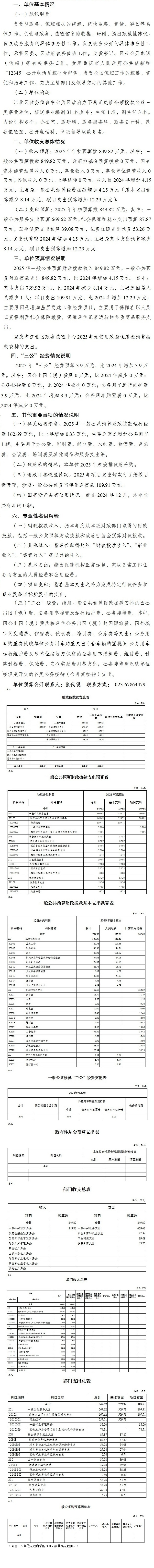重慶市江北區政務值班中心2025年單位預算情況說明