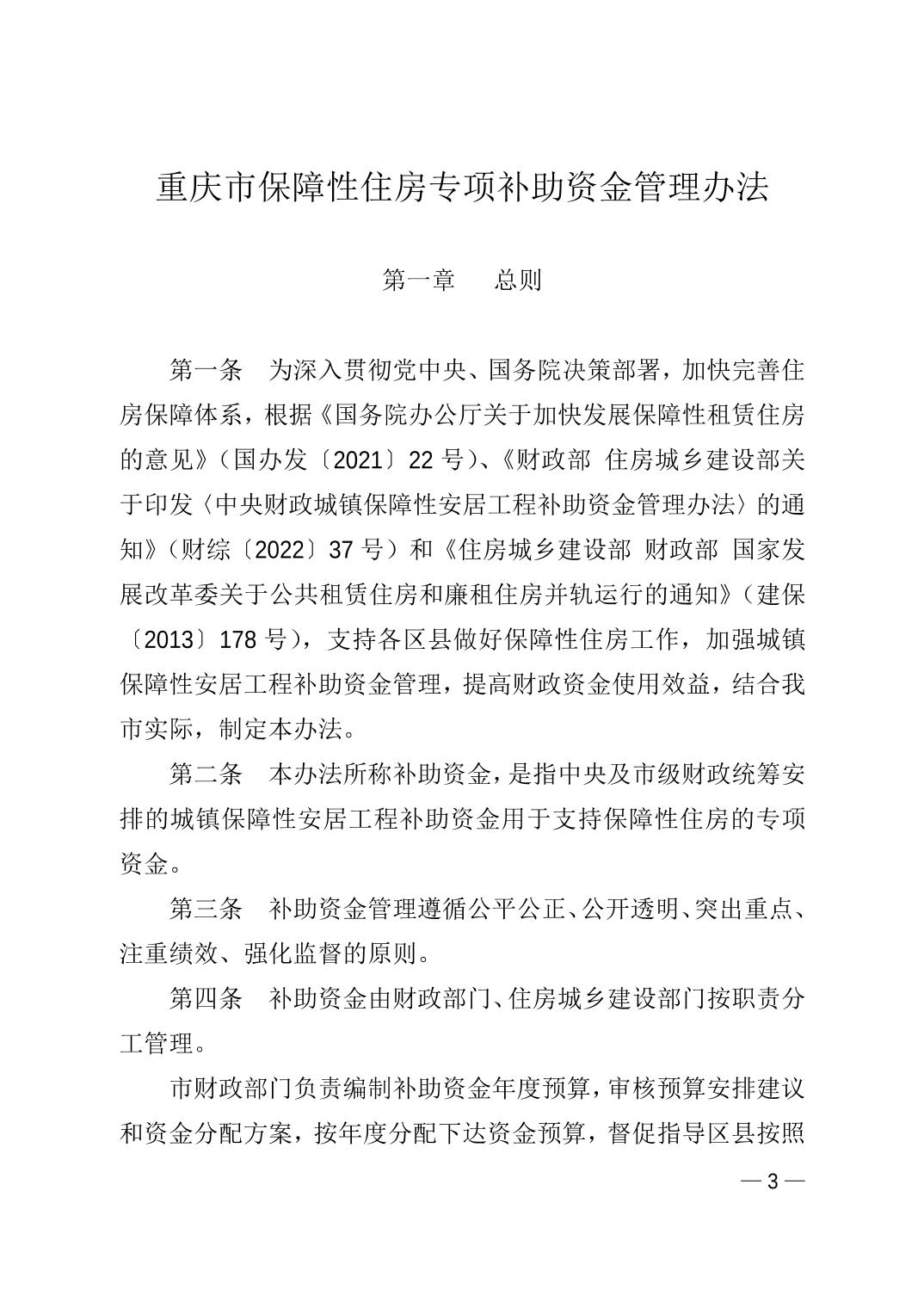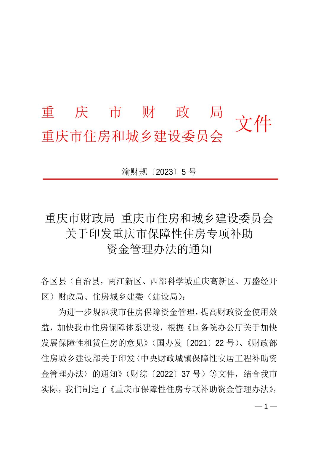 重慶市財政局 重慶市住房和城鄉(xiāng)建設委員會關(guān)于印發(fā)重慶市保障性住房專項補助資金管理辦法的通知