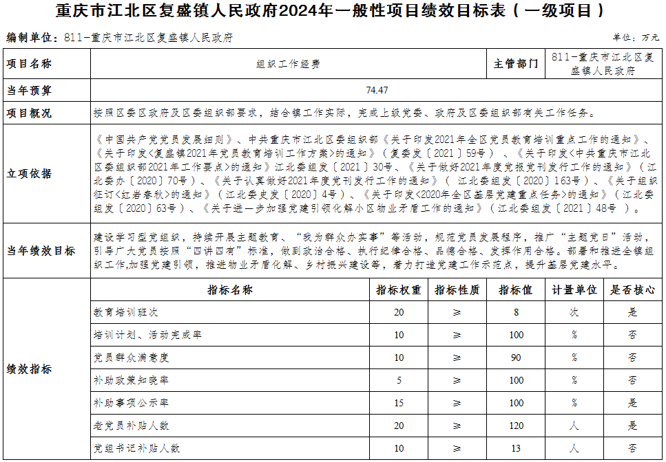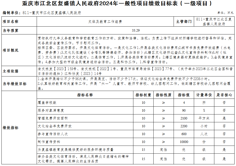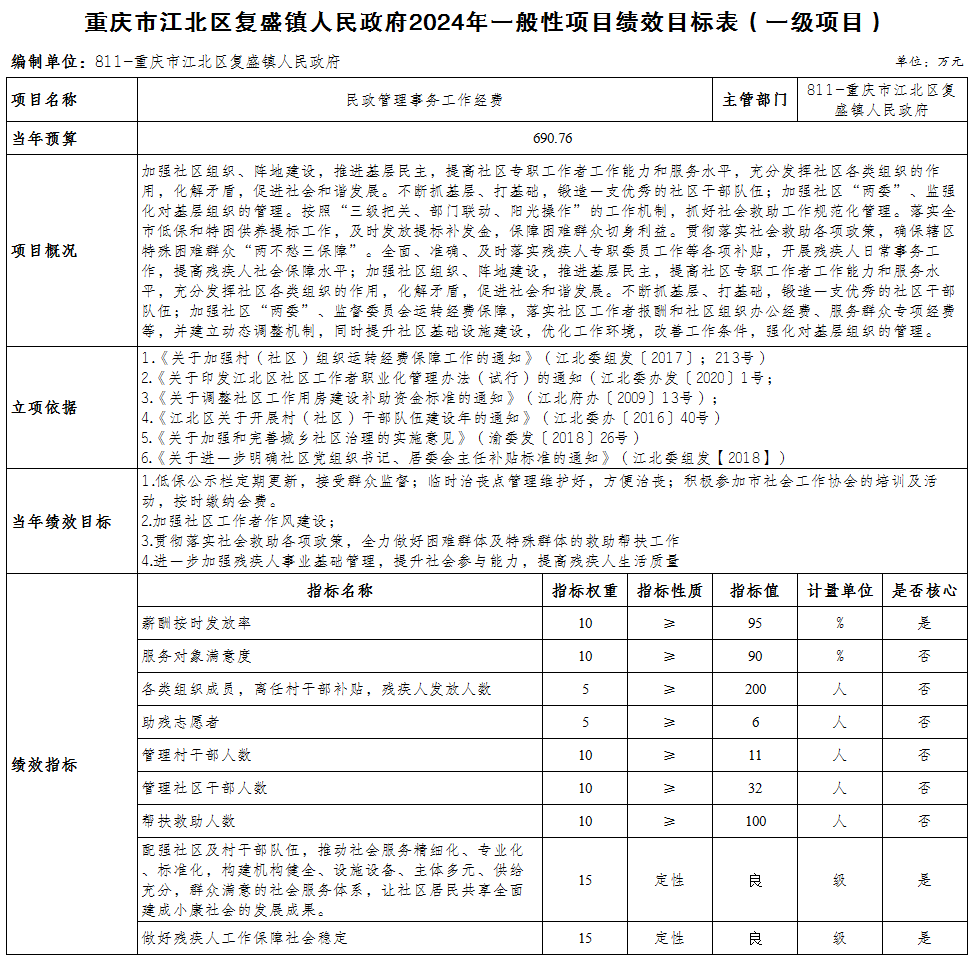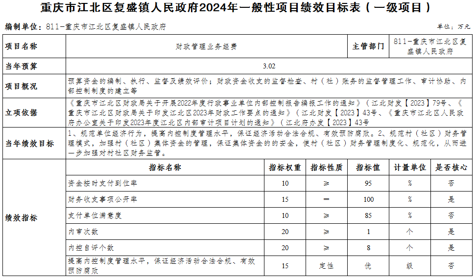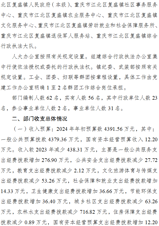 重慶市江北區(qū)復盛鎮(zhèn)人民政府 2024年部門預算情況說明