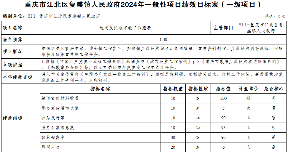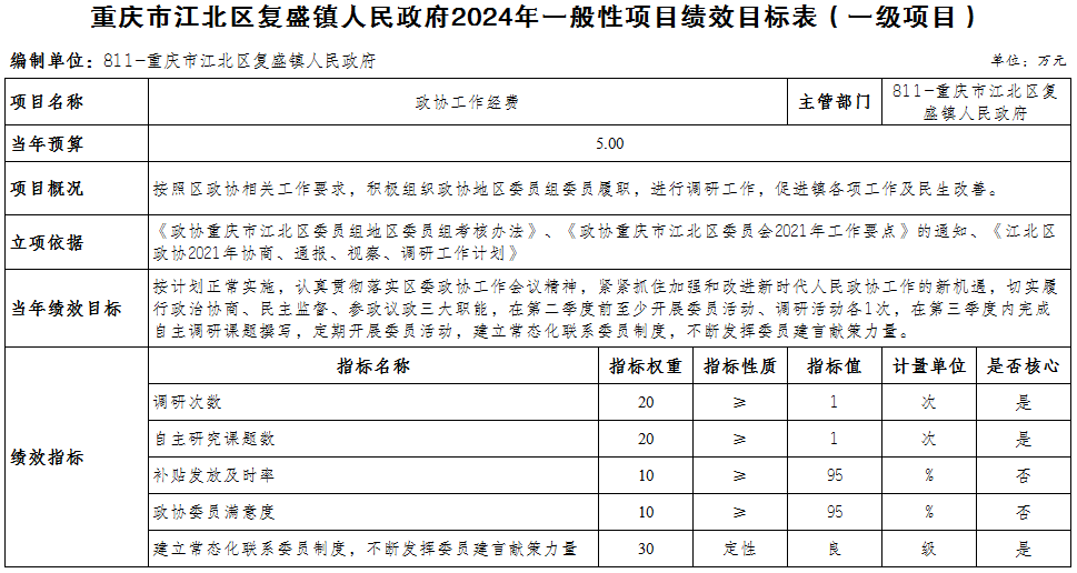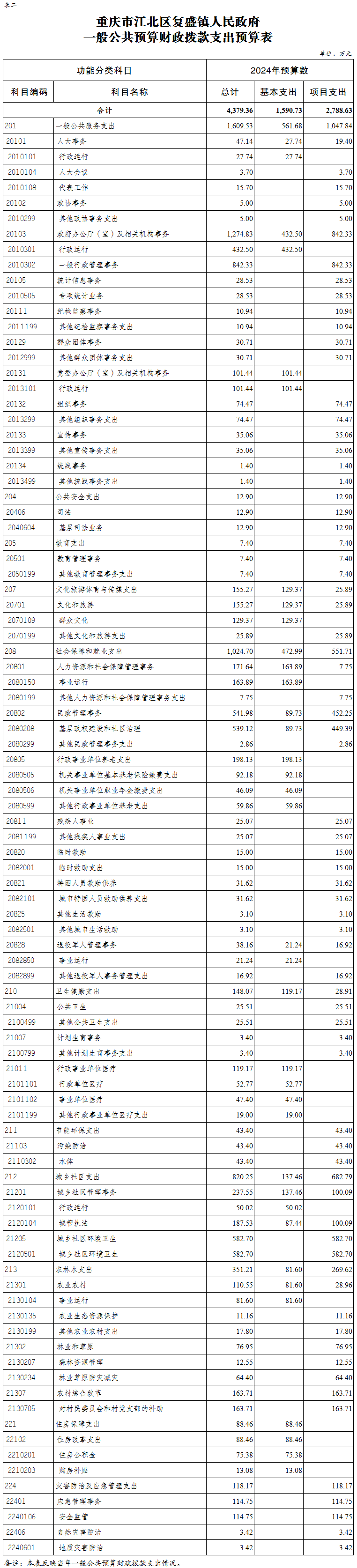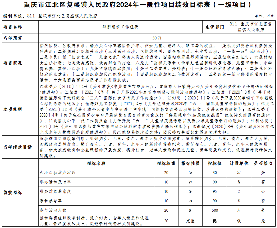 重慶市江北區(qū)復盛鎮(zhèn)人民政府 2024年部門預算情況說明