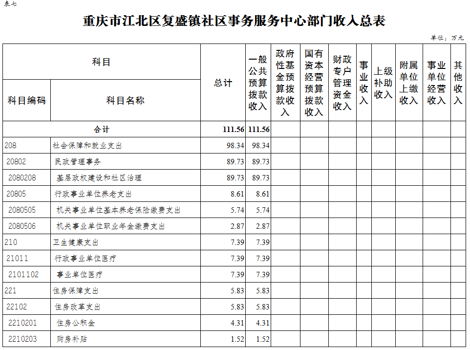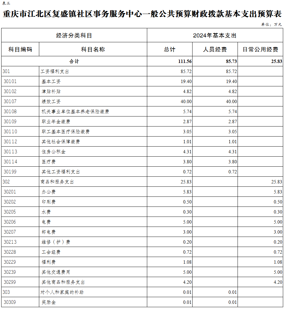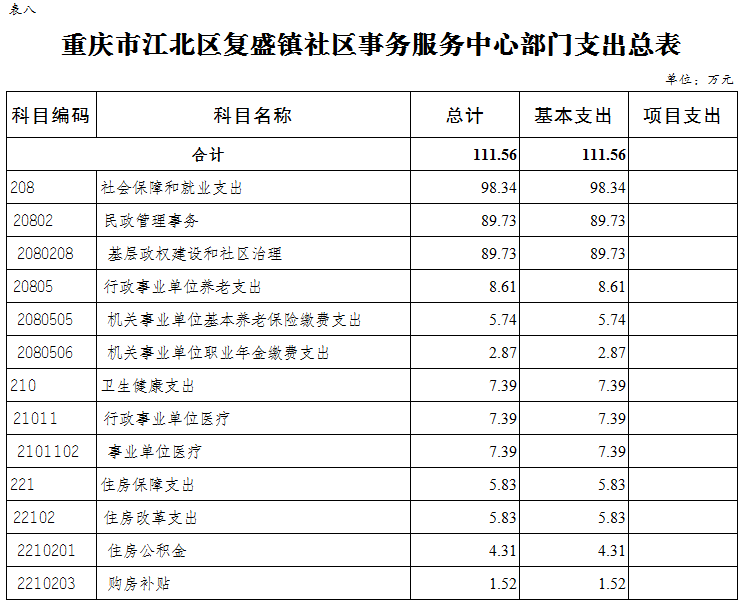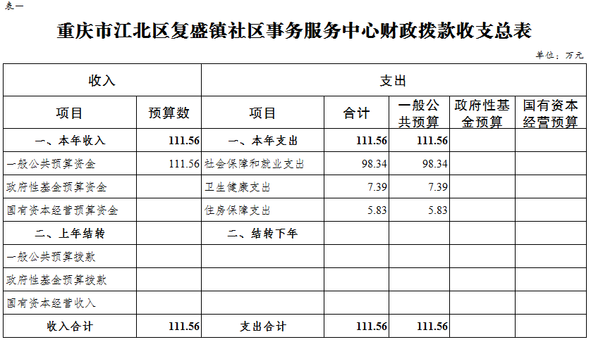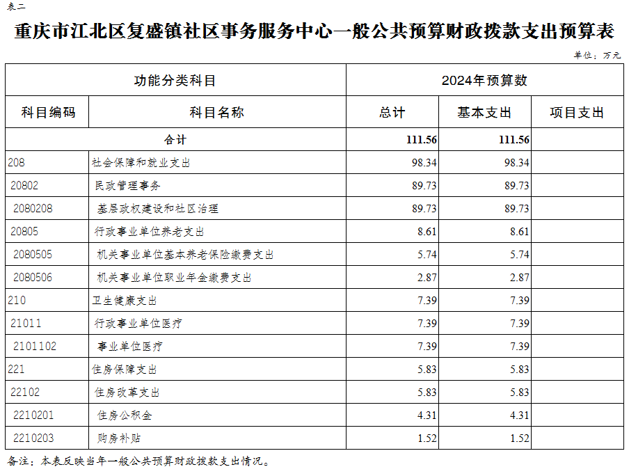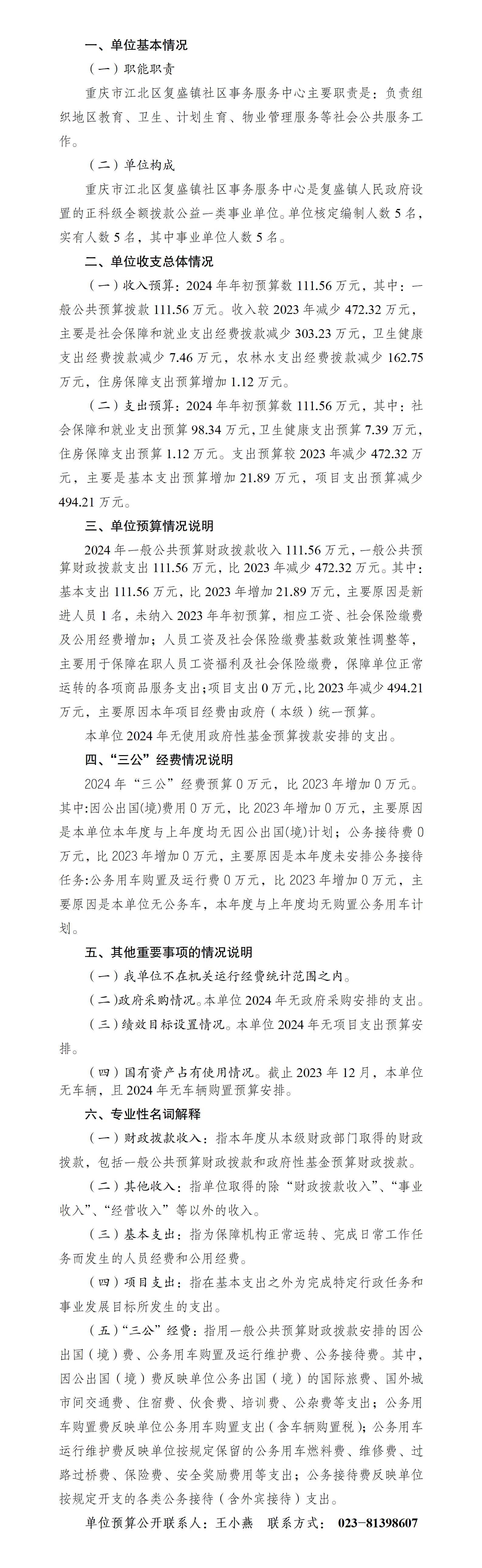 重慶市江北區復盛鎮社區事務服務中心 2024年單位預算情況說明