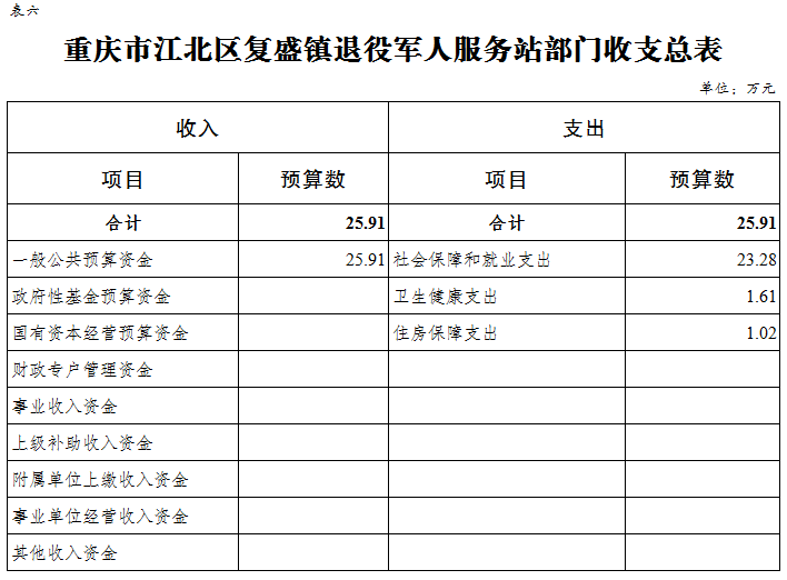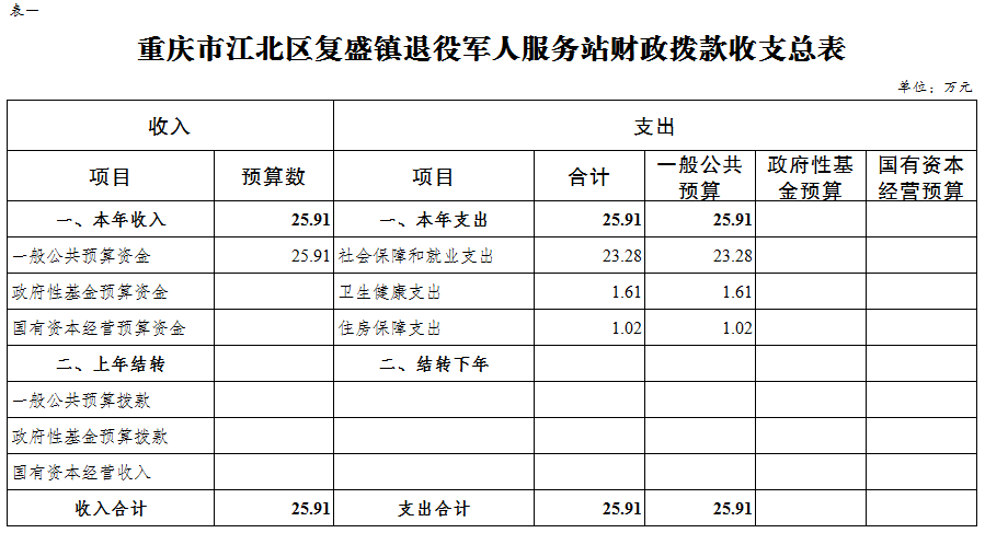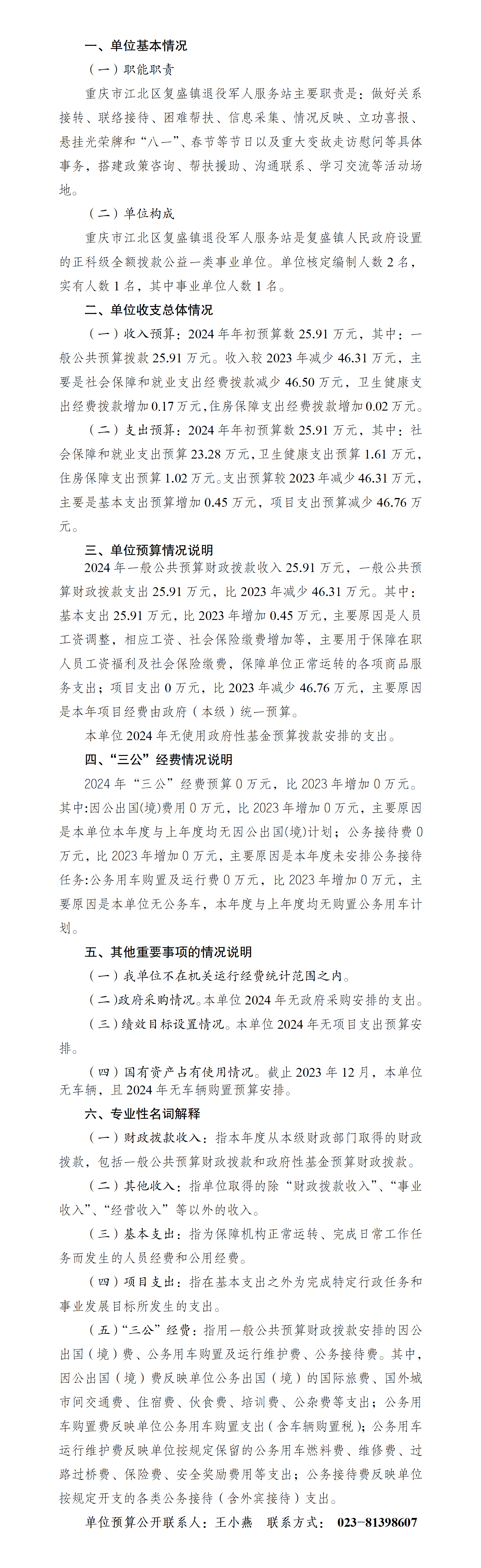 重慶市江北區復盛鎮退役軍人服務站 2024年單位預算情況說明