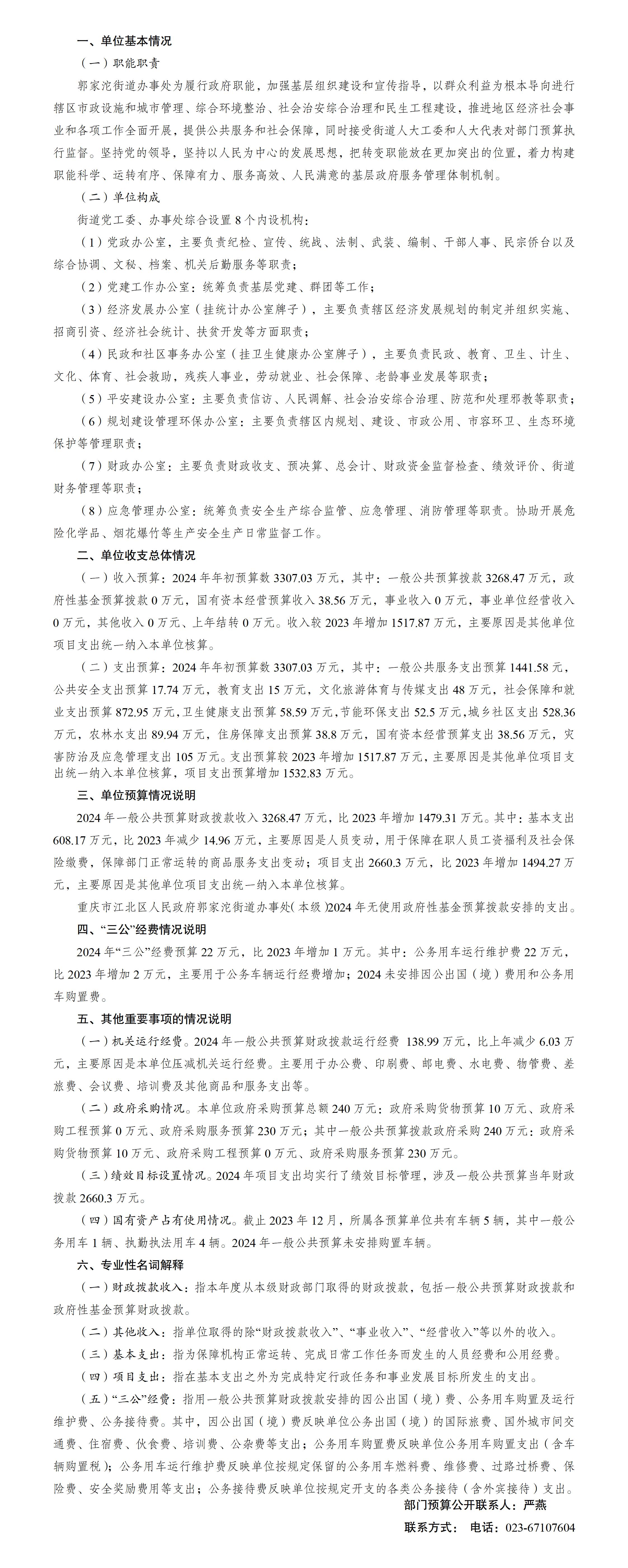 重慶市江北區(qū)人民政府郭家沱街道辦事處(本級)2024年單位預(yù)算情況說明
