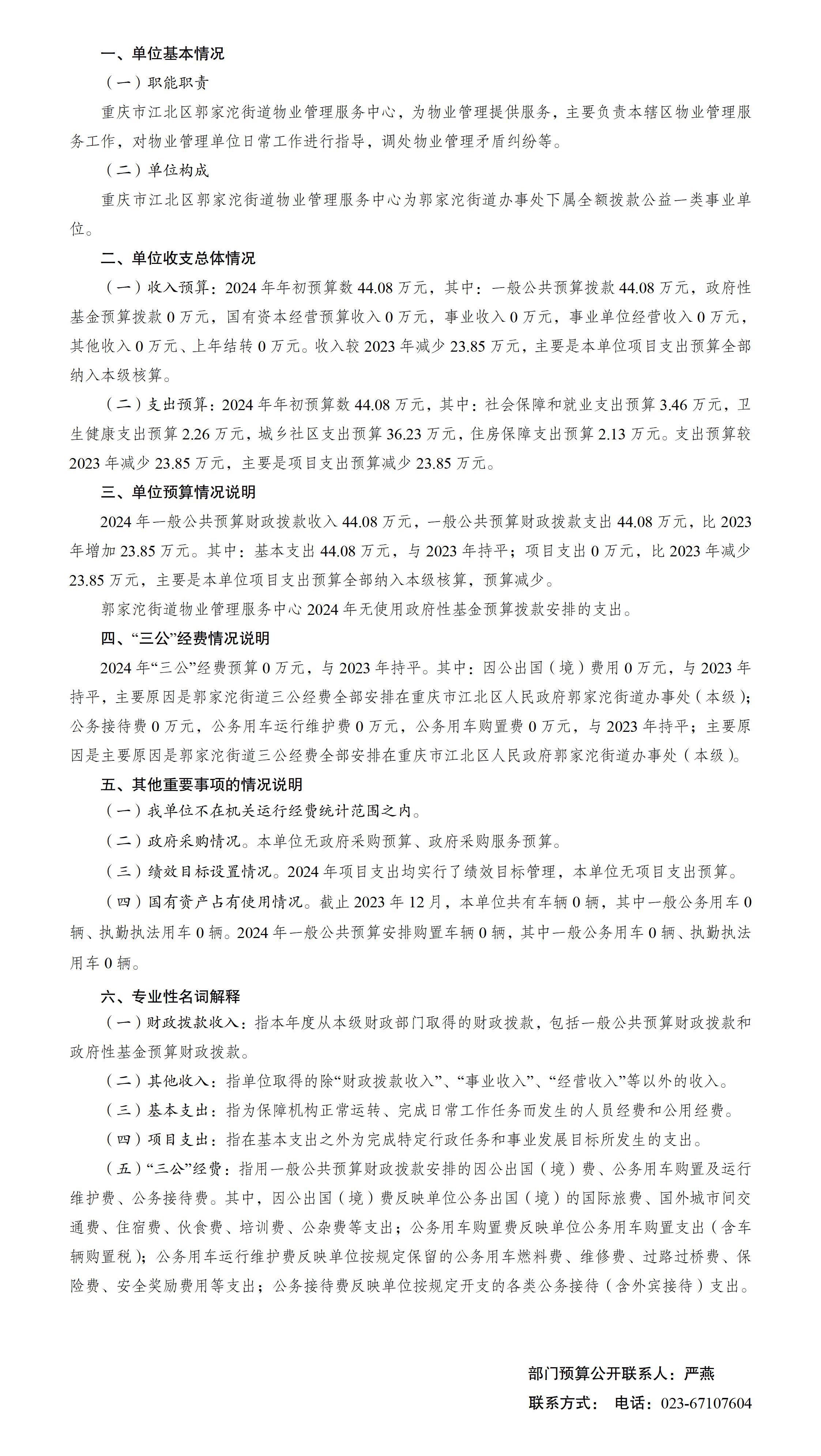 重慶市江北區郭家沱街道物業管理服務中心2024年單位預算情況說明