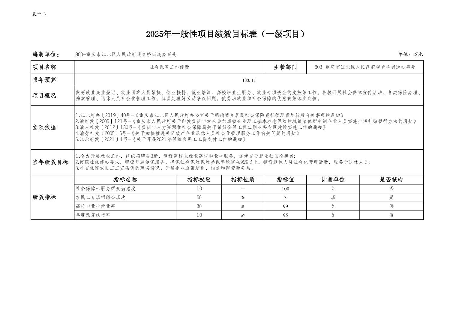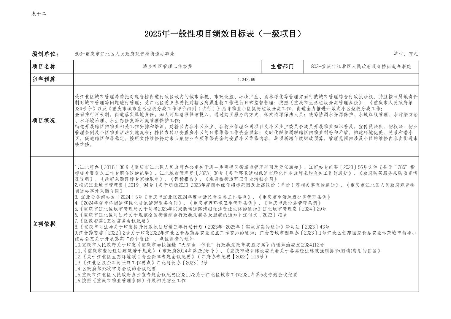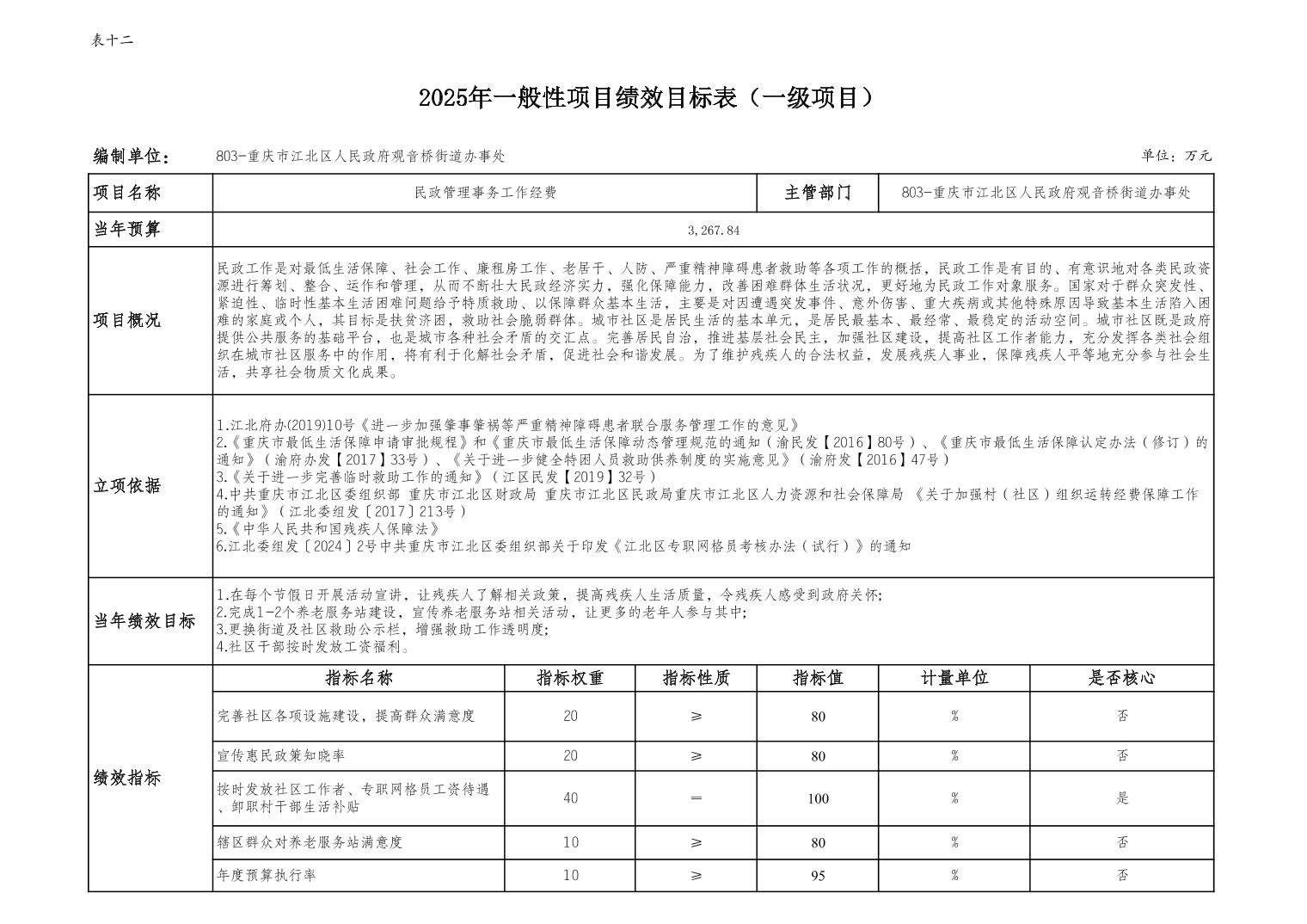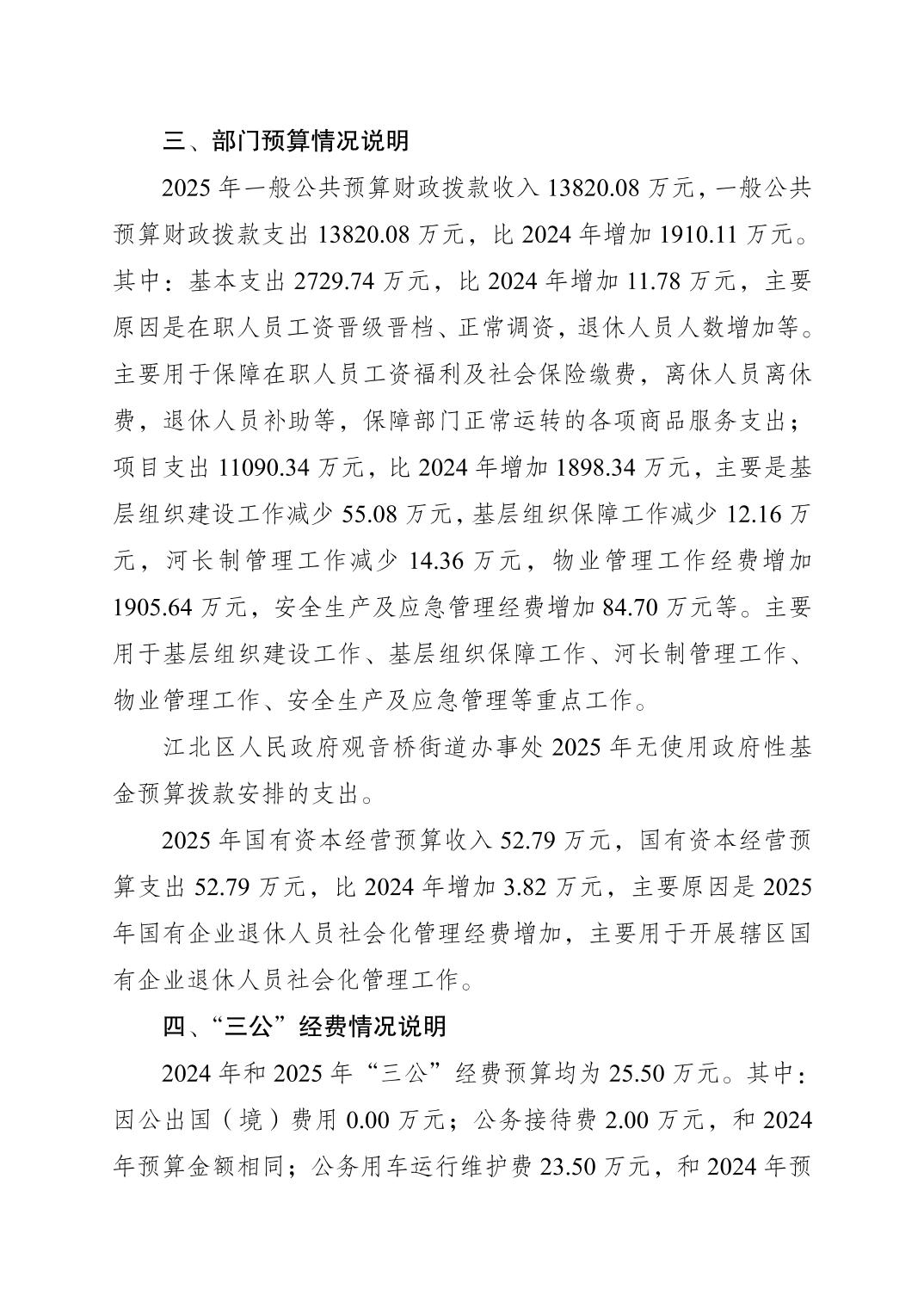 重慶市江北區人民政府觀音橋街道辦事處2025年部門預算情況說明