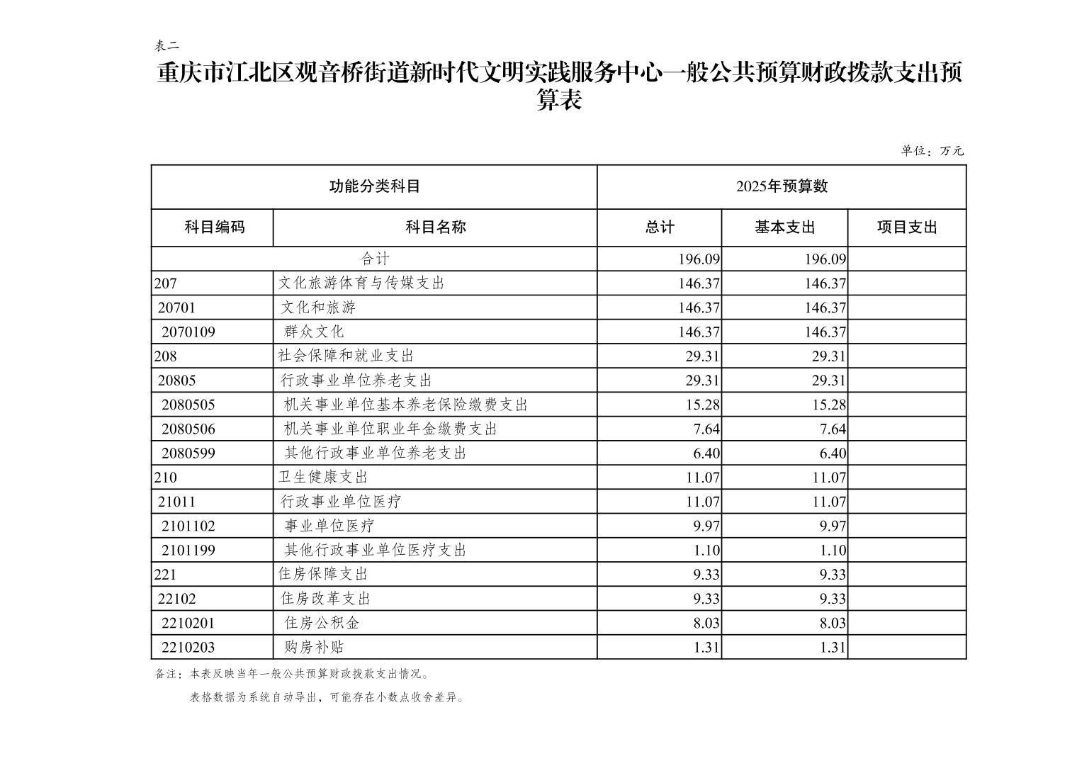重慶市江北區觀音橋街道新時代文明實踐服務中心2025年單位預算情況說明