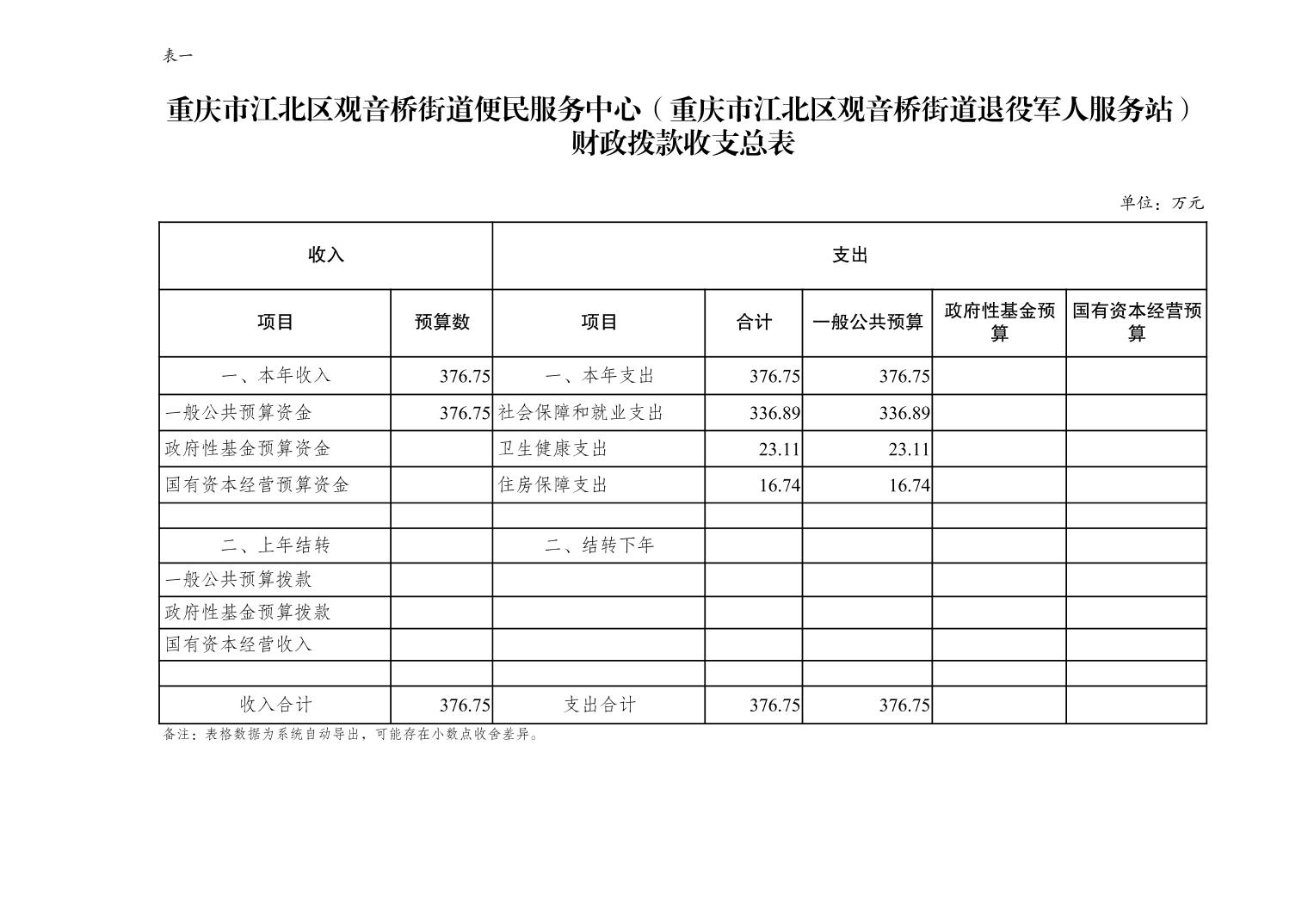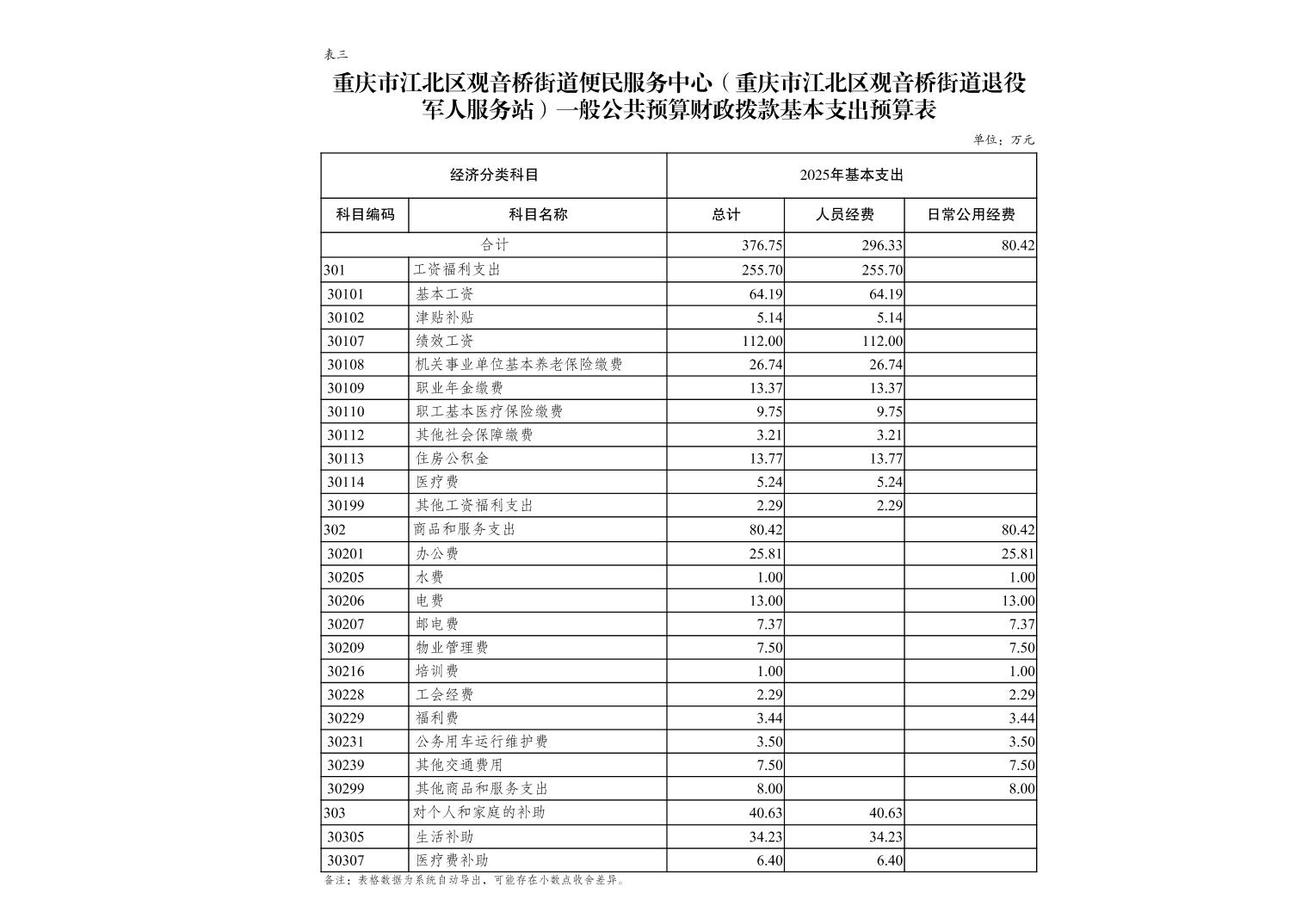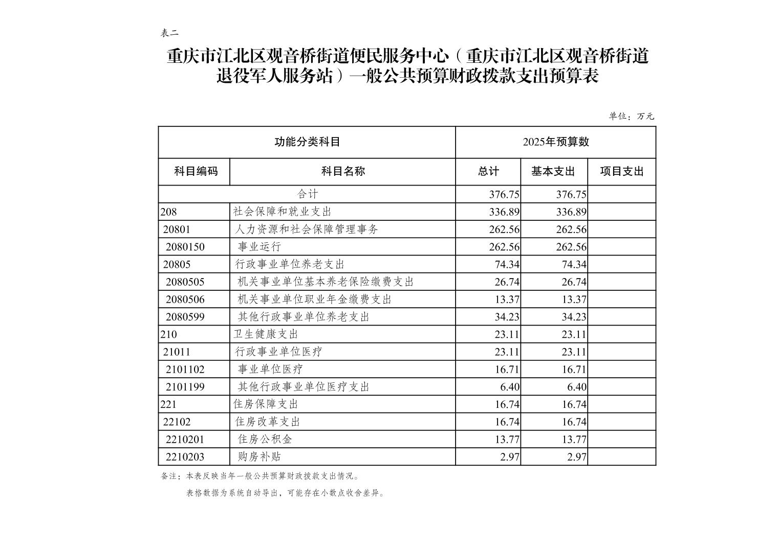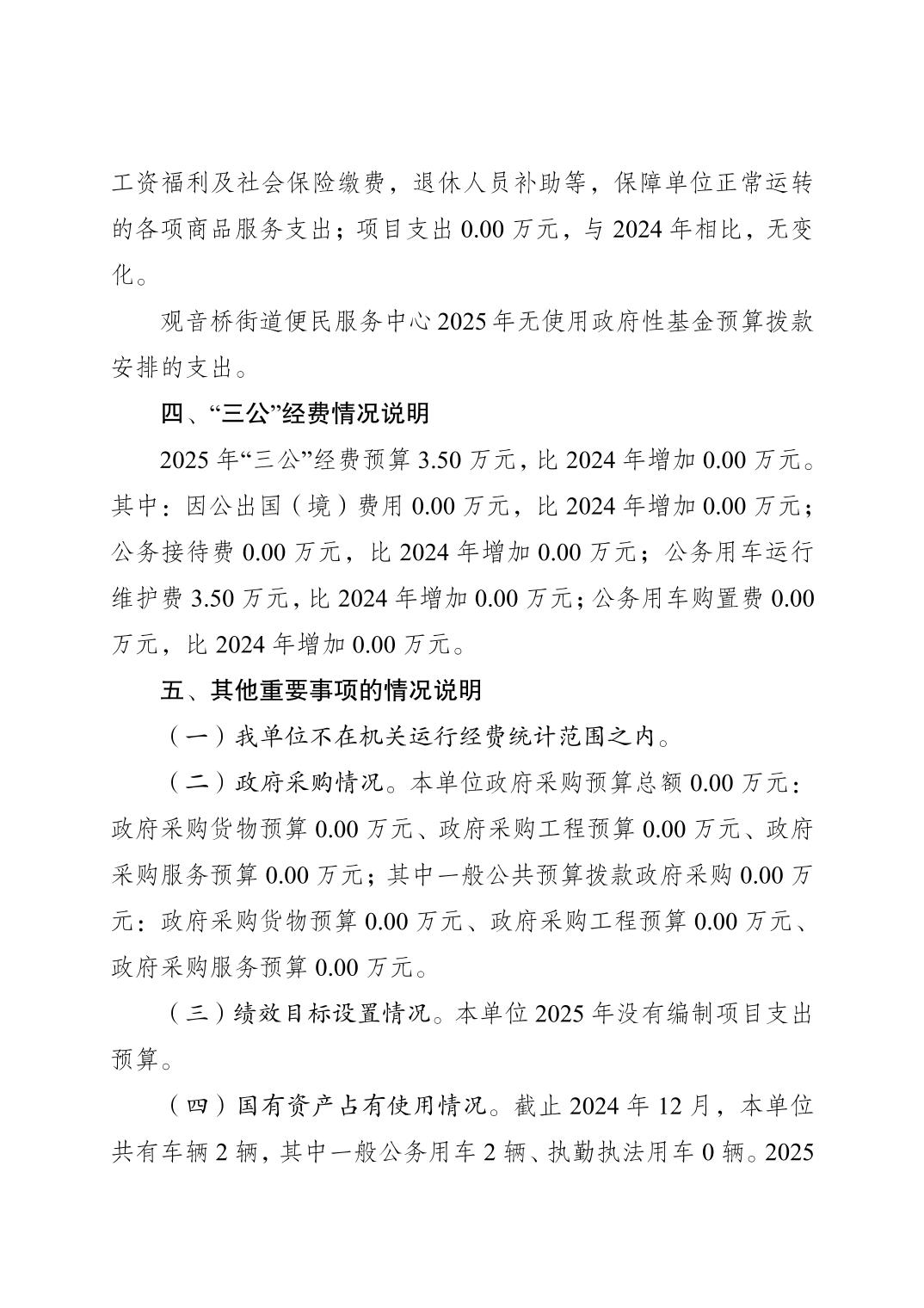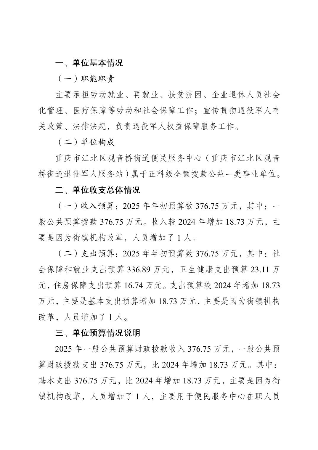 重慶市江北區觀音橋街道便民服務中心(重慶市江北區觀音橋街道退役軍人服務站)2025年單位預算情況說明