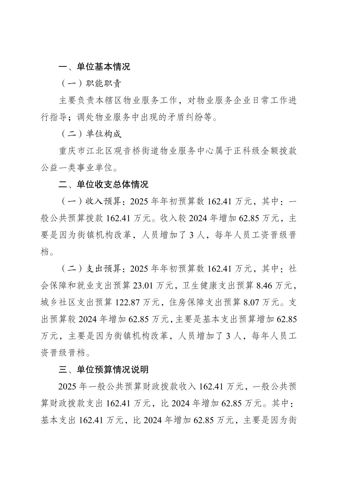 重慶市江北區(qū)觀音橋街道物業(yè)服務(wù)中心2025年單位預(yù)算情況說(shuō)明