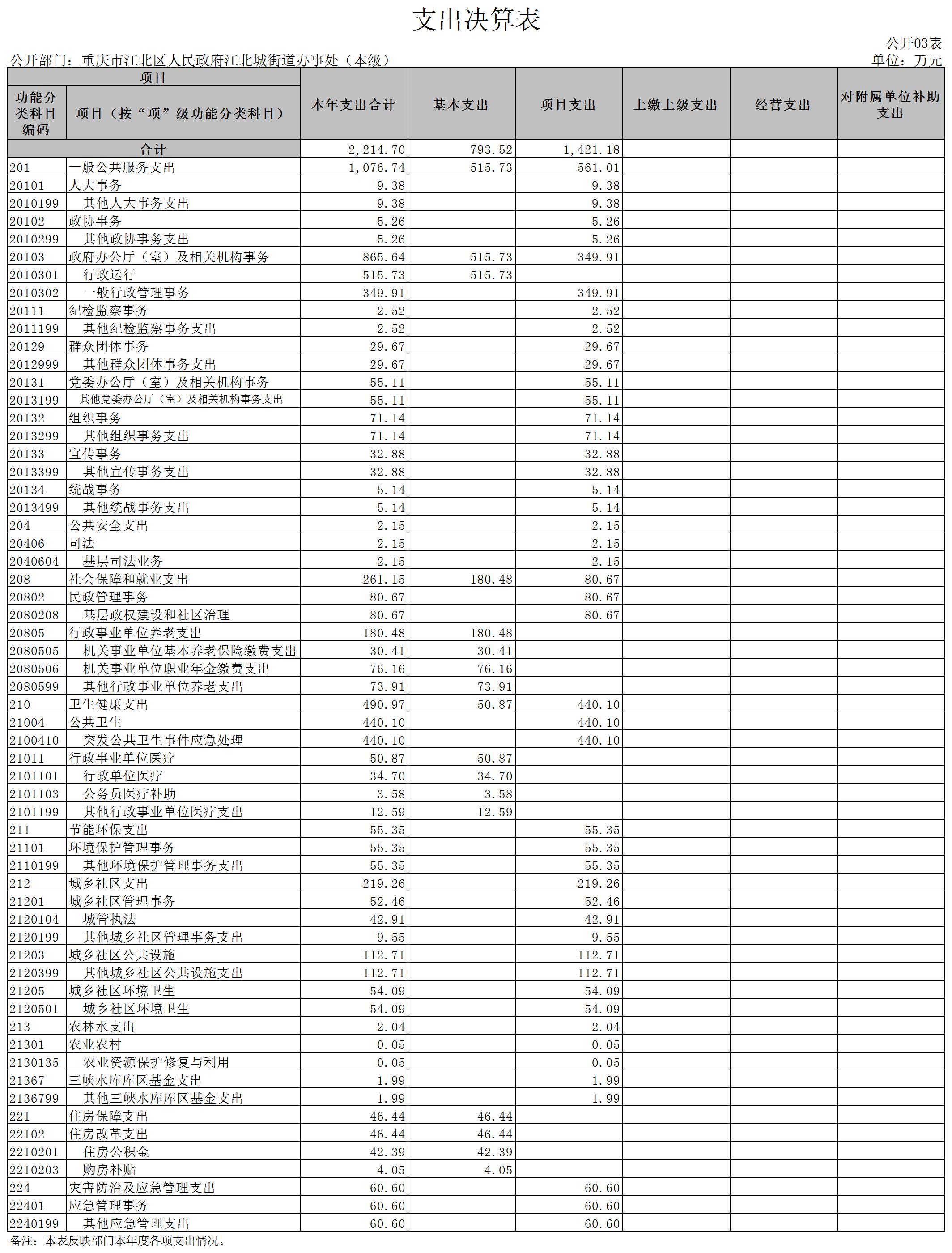 重慶市江北區人民政府江北城街道辦事處(本級)2022年度部門決算說明
