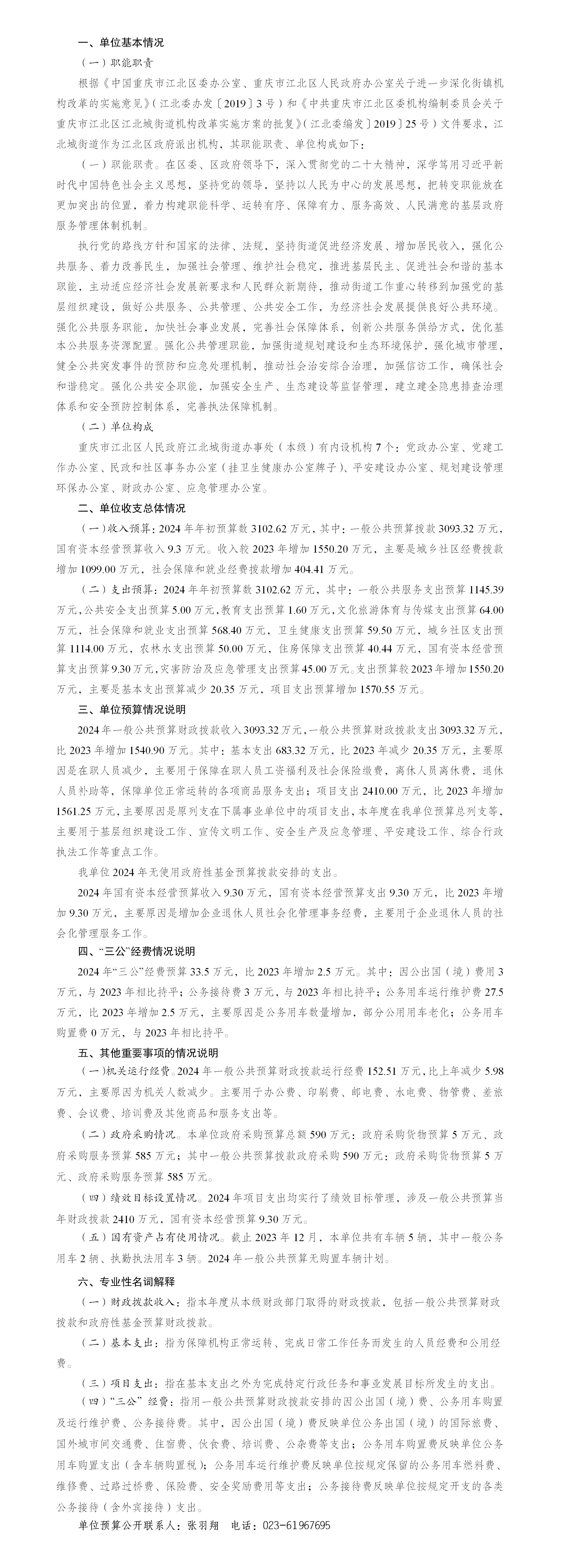 重慶市江北區人民政府江北城街道辦事處(本級)2024年單位預算情況說明