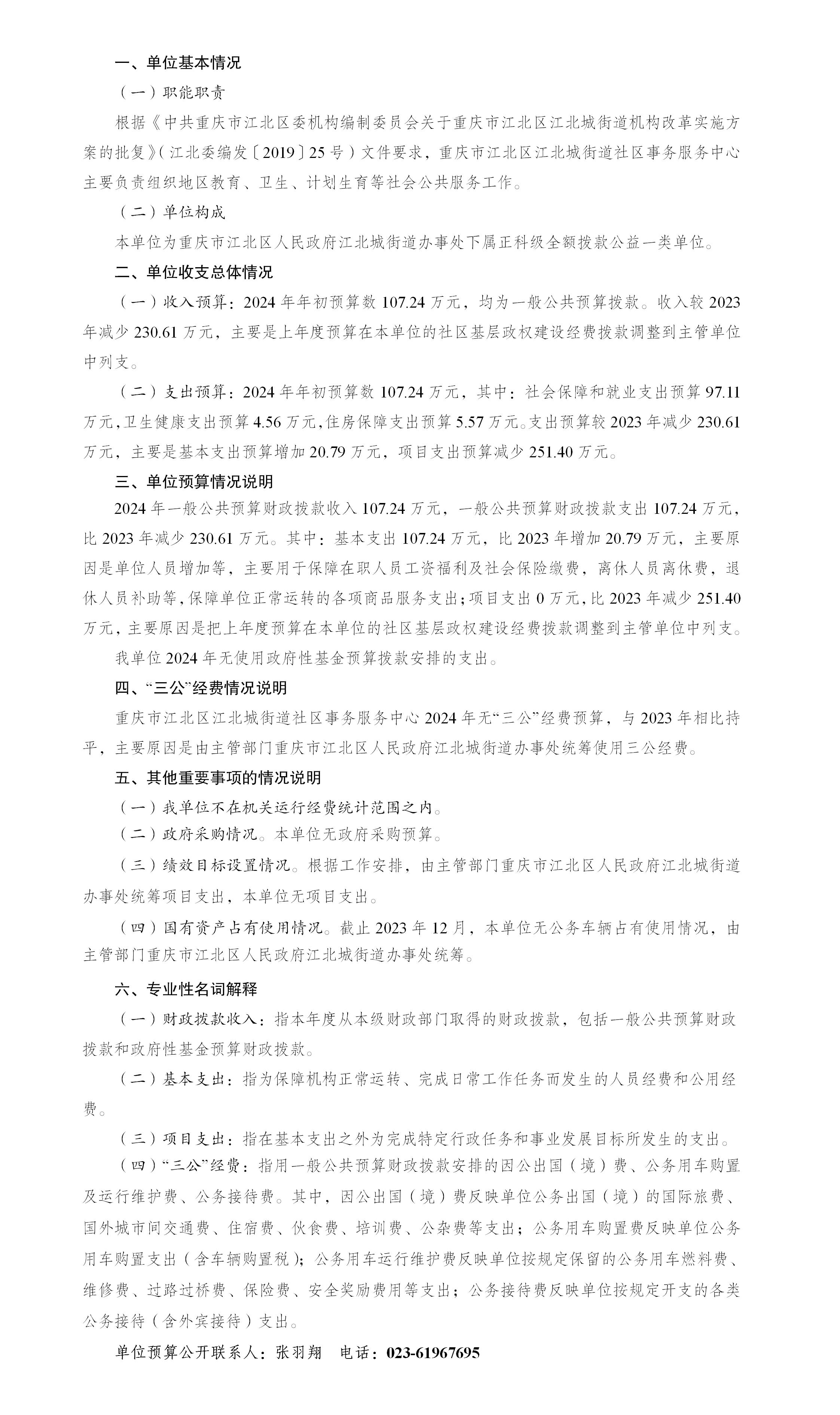 重慶市江北區(qū)江北城街道社區(qū)事務(wù)服務(wù)中心2024年單位預(yù)算情況說(shuō)明