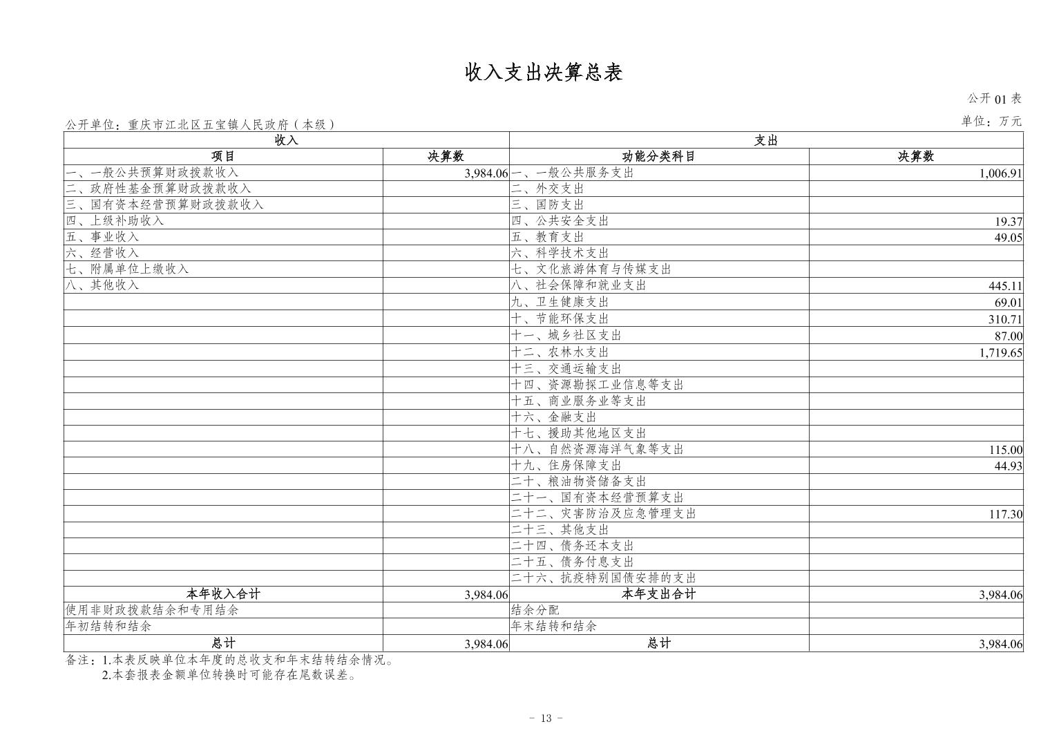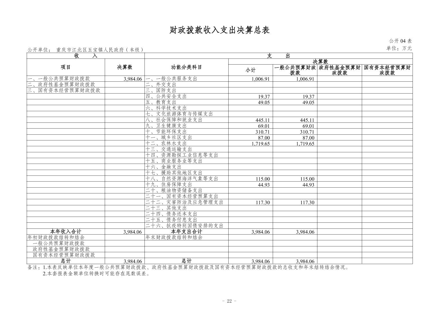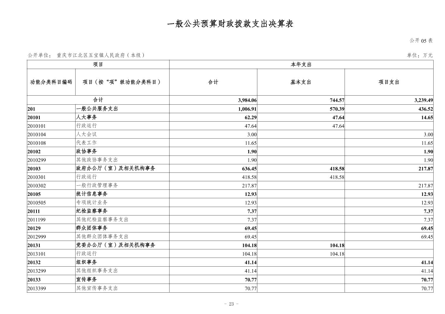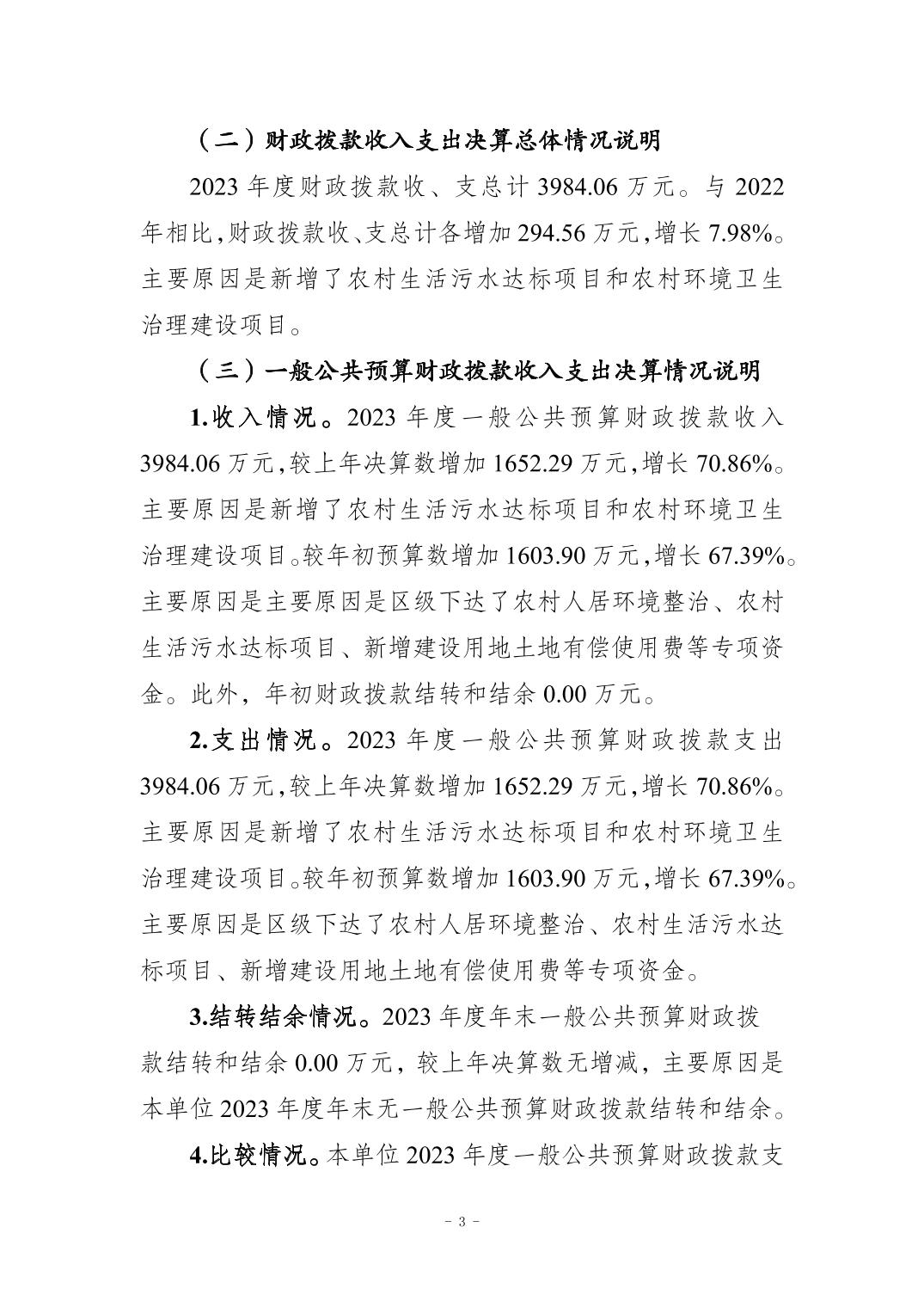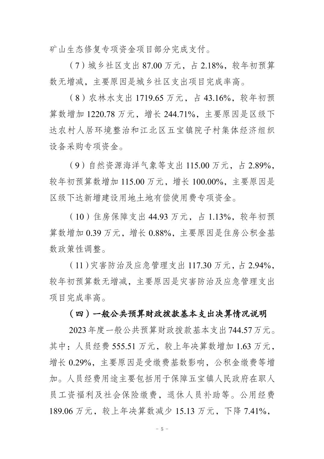 重慶市江北區五寶鎮人民政府(本級)2023年度單位決算情況說明