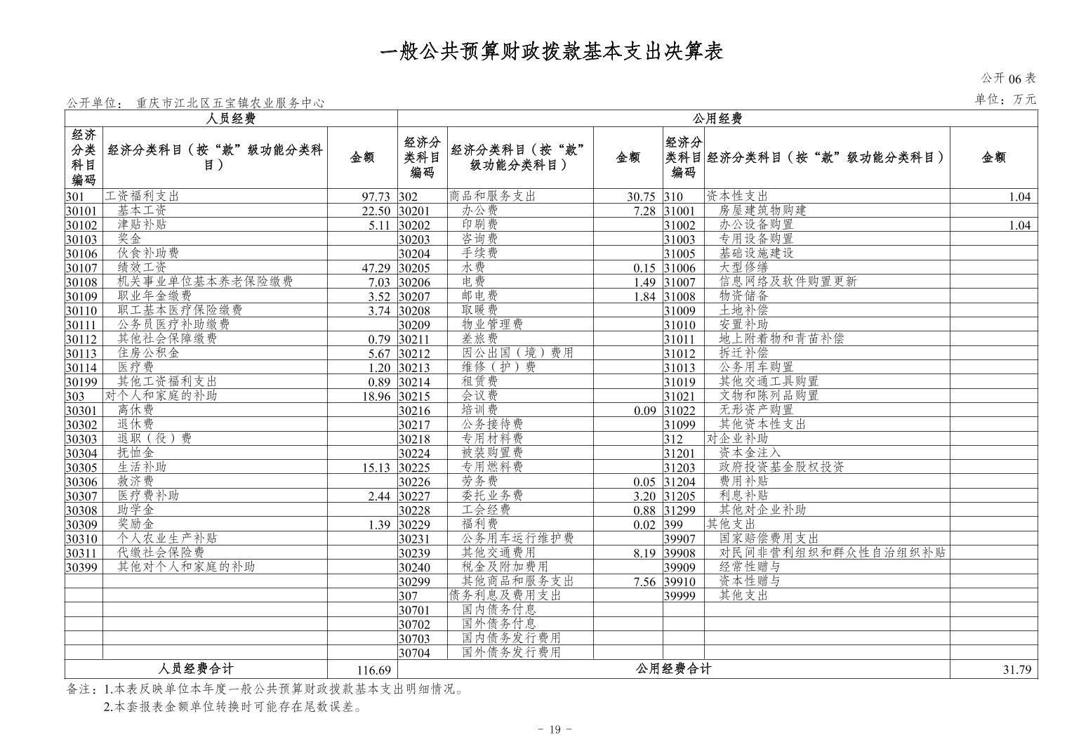 重慶市江北區(qū)五寶鎮(zhèn)農(nóng)業(yè)服務(wù)中心2023年度單位決算情況說明