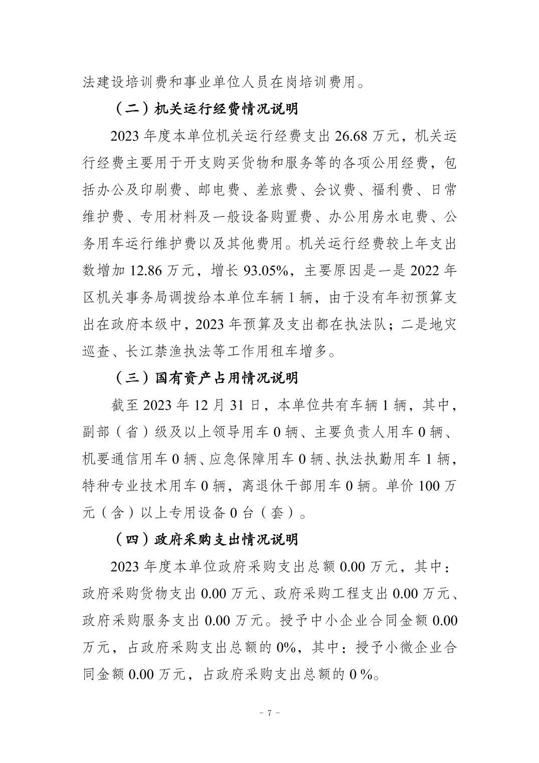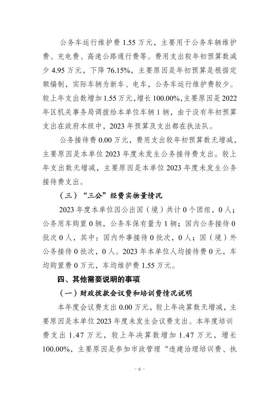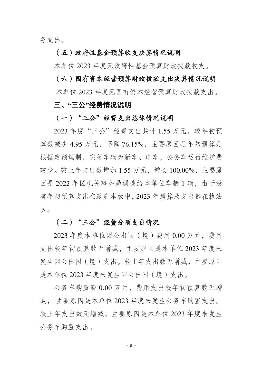 重慶市江北區五寶鎮綜合行政執法大隊2023年度單位決算情況說明