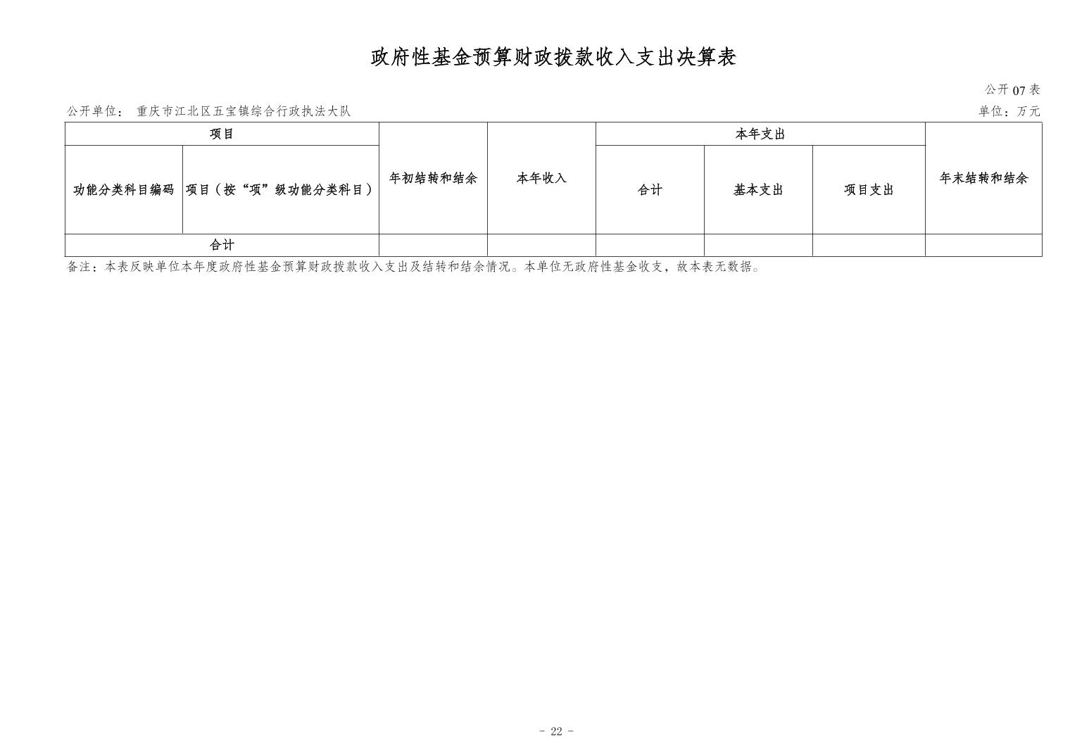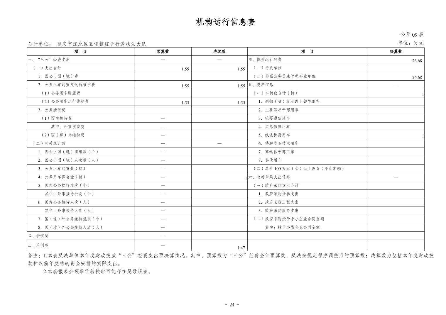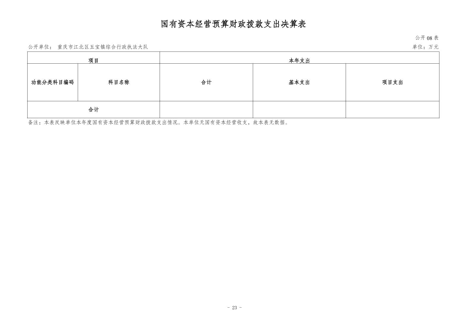 重慶市江北區五寶鎮綜合行政執法大隊2023年度單位決算情況說明