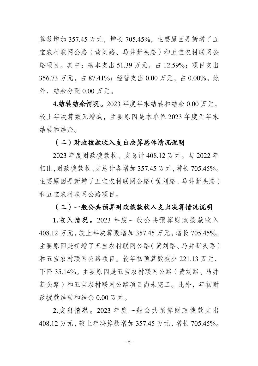重慶市江北區五寶鎮村鎮建設服務中心2023年度單位決算情況說明