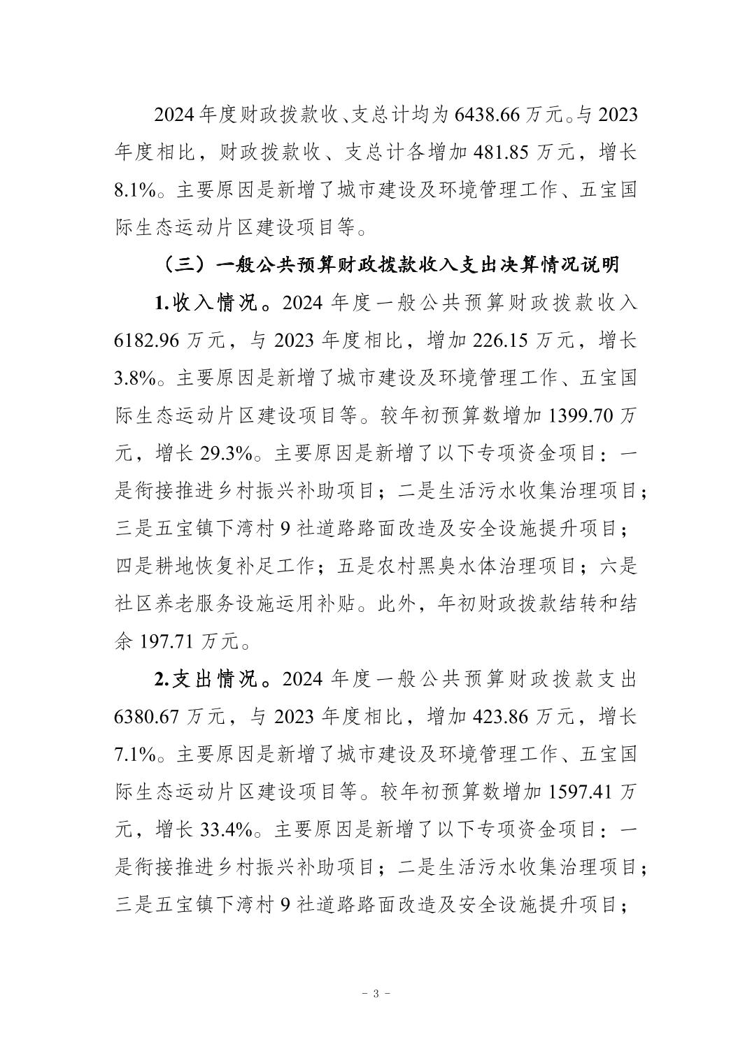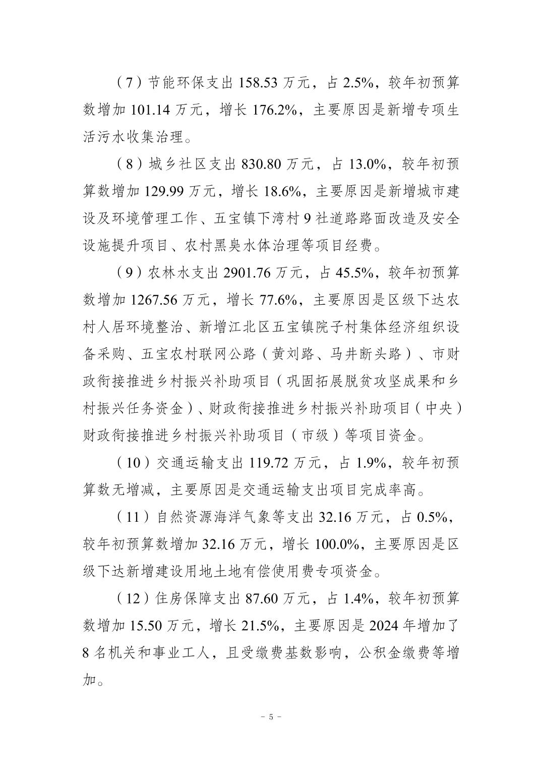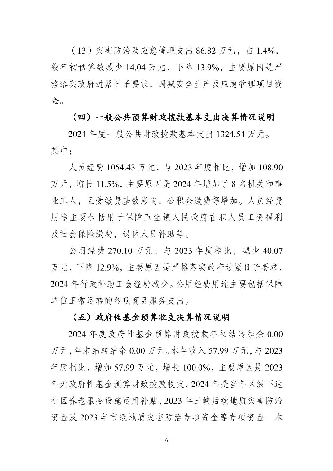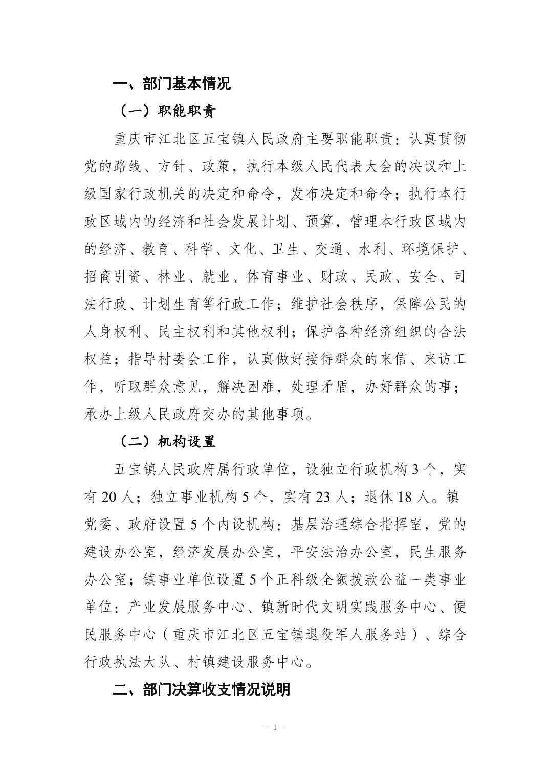 重慶市江北區(qū)五寶鎮(zhèn)人民政府2024年度決算公開情況說明