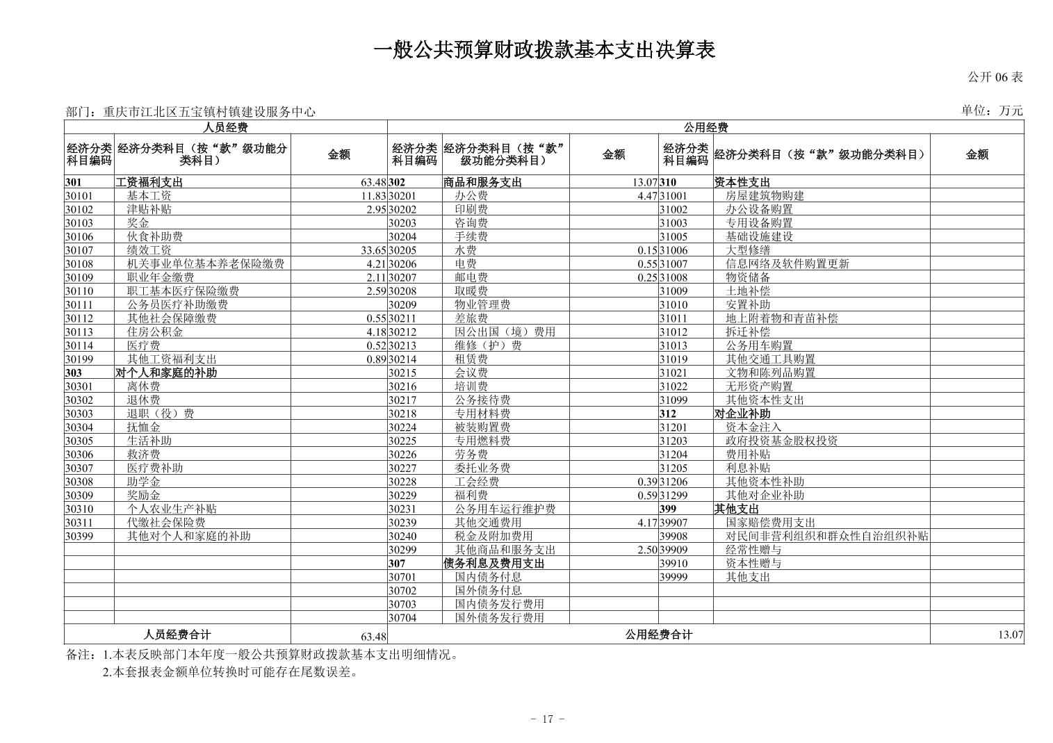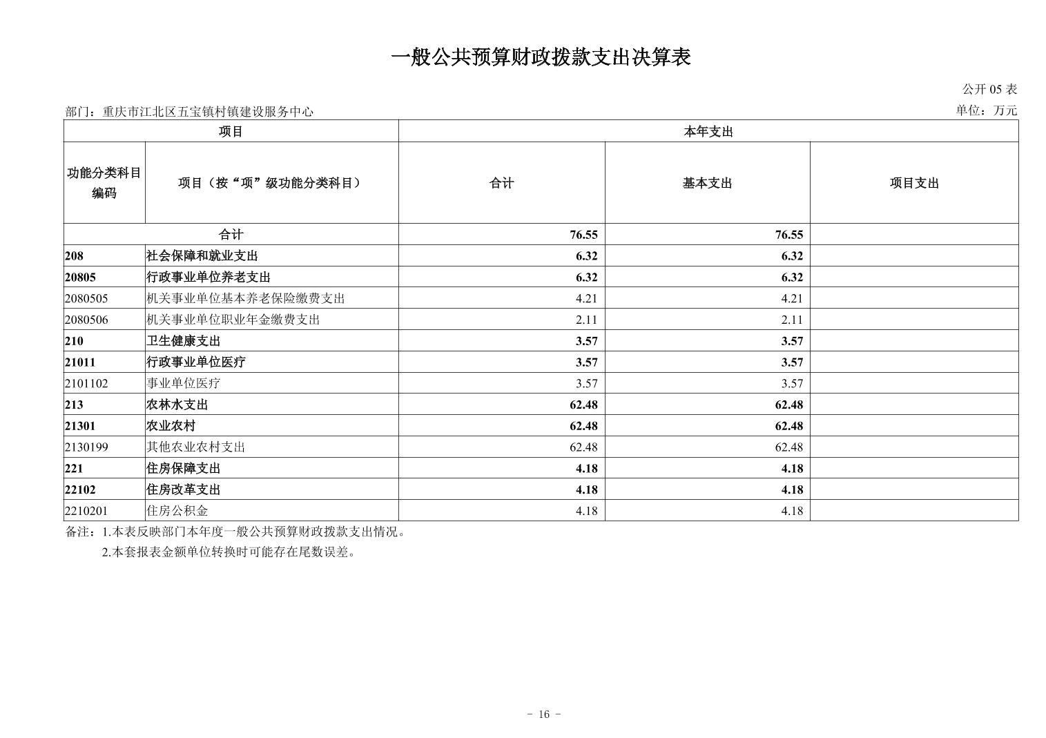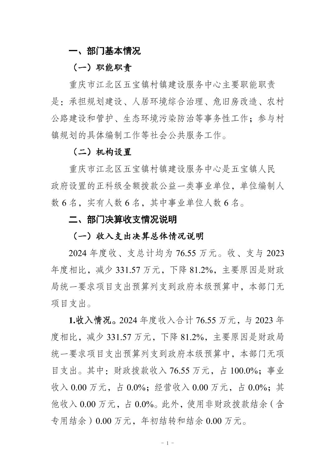 重慶市江北區五寶鎮村鎮建設服務中心2024年度單位決算情況說明