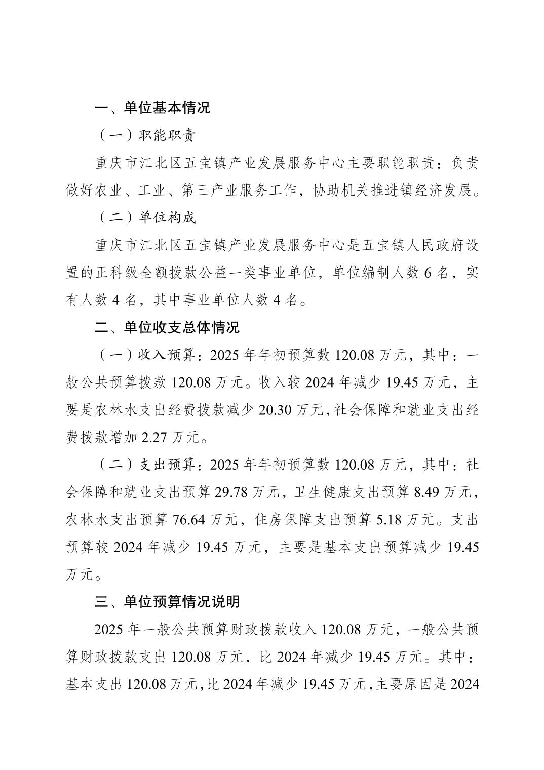 重慶市江北區(qū)五寶鎮(zhèn)產(chǎn)業(yè)發(fā)展服務(wù)中心2025年單位預(yù)算情況說明