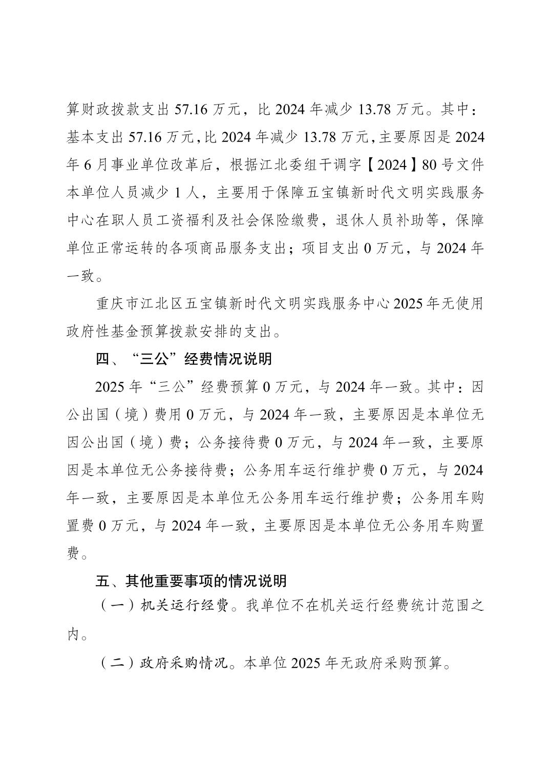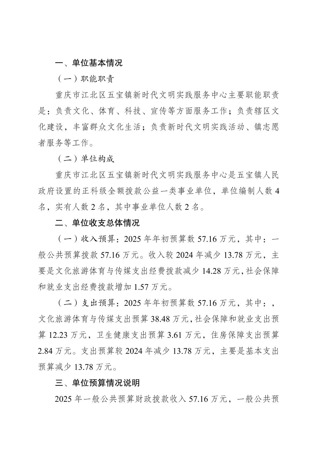重慶市江北區五寶鎮新時代文明實踐服務中心2025年單位預算情況說明
