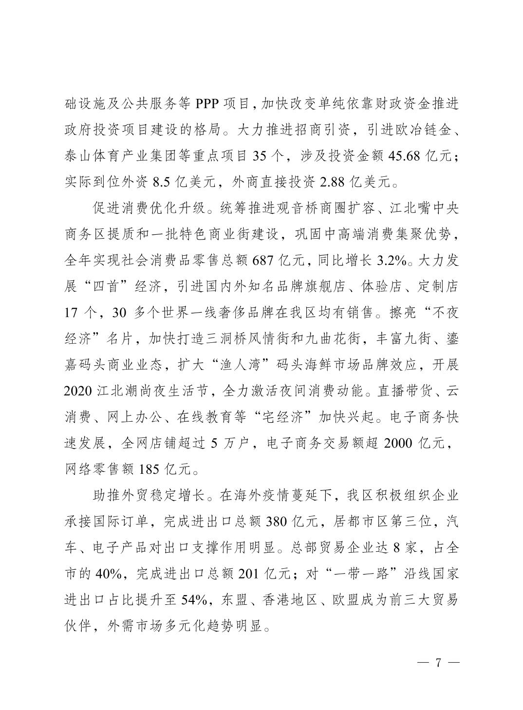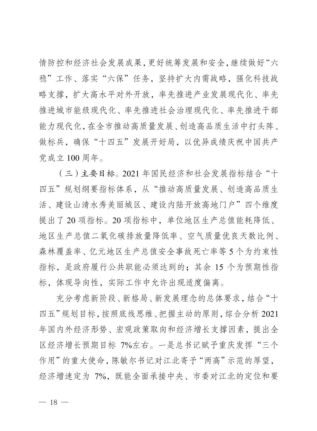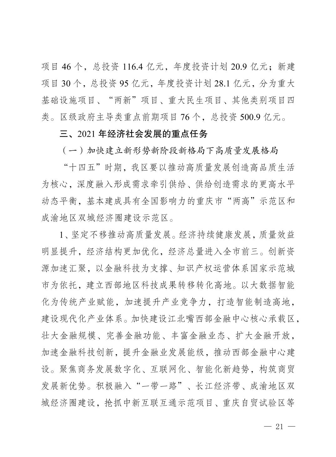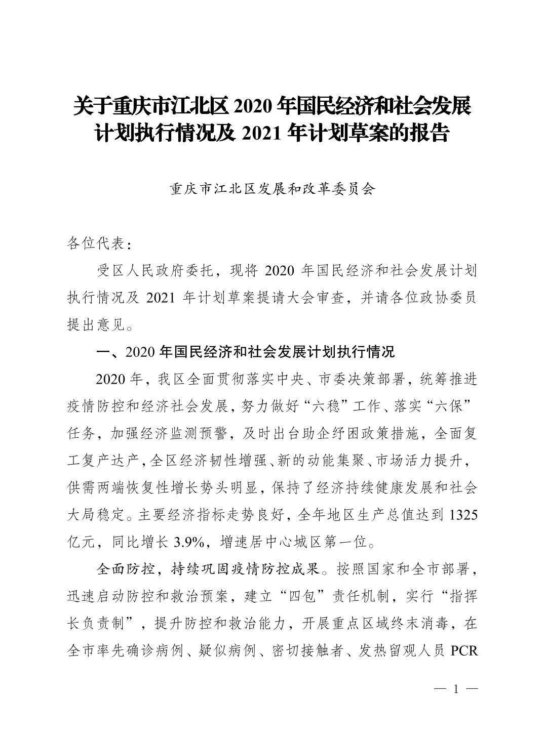 關于重慶市江北區2020年國民經濟和社會發展計劃執行情況及2021年計劃草案的報告