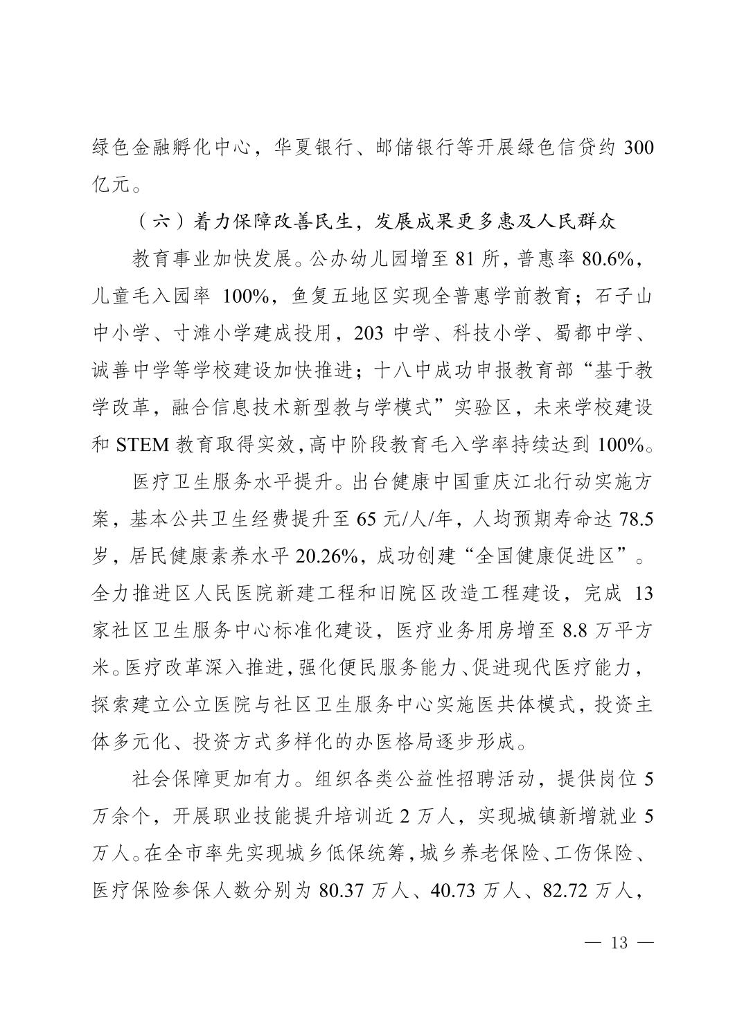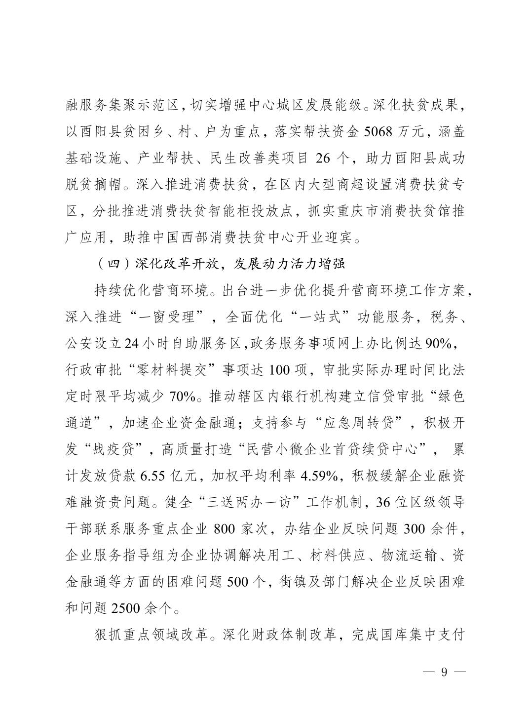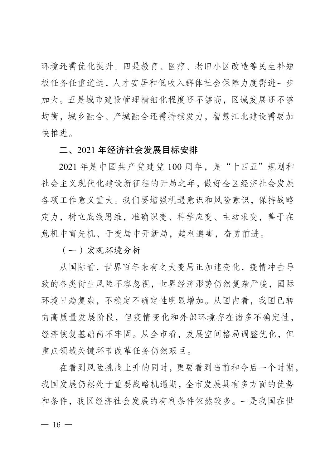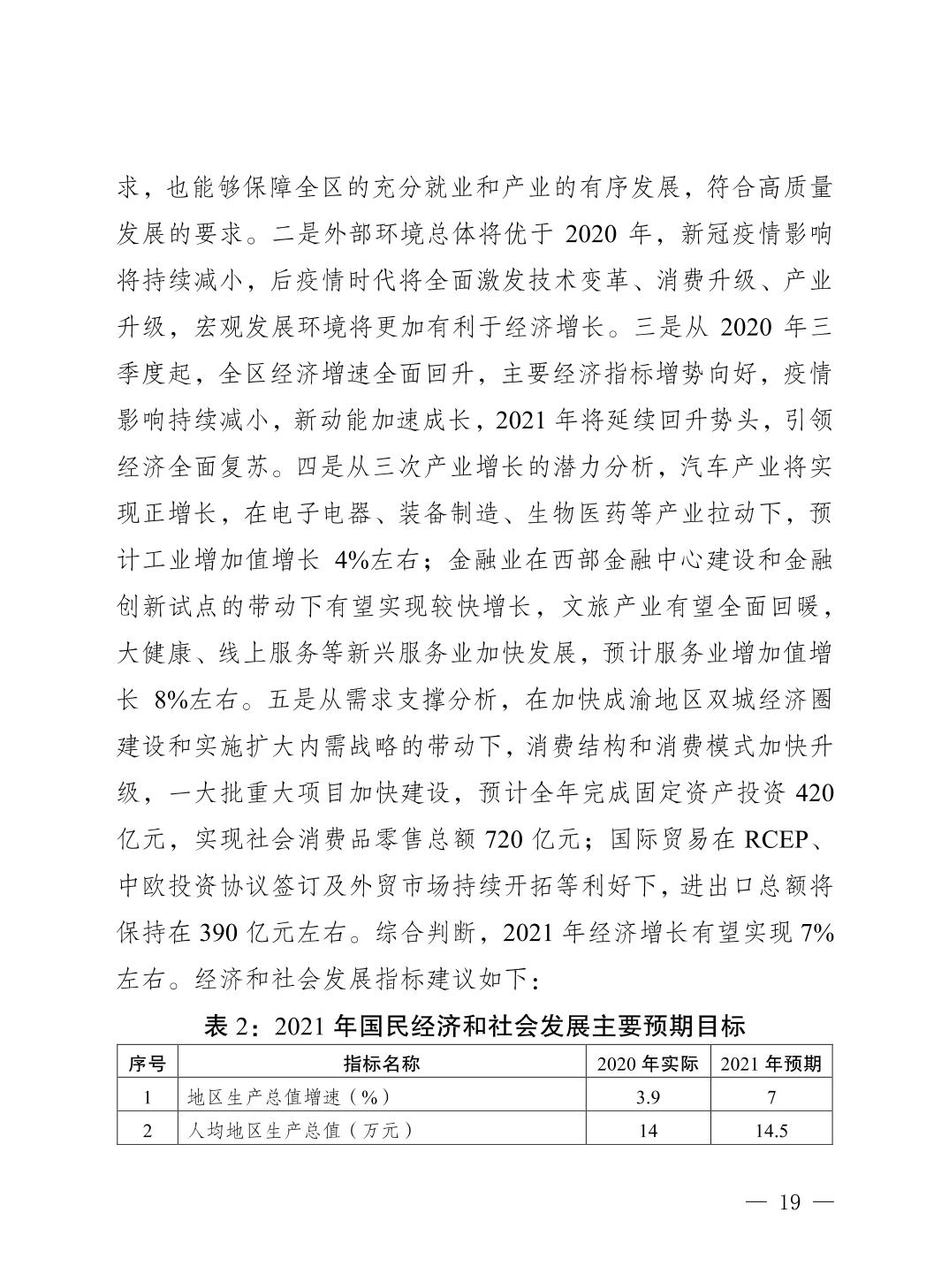 關于重慶市江北區2020年國民經濟和社會發展計劃執行情況及2021年計劃草案的報告